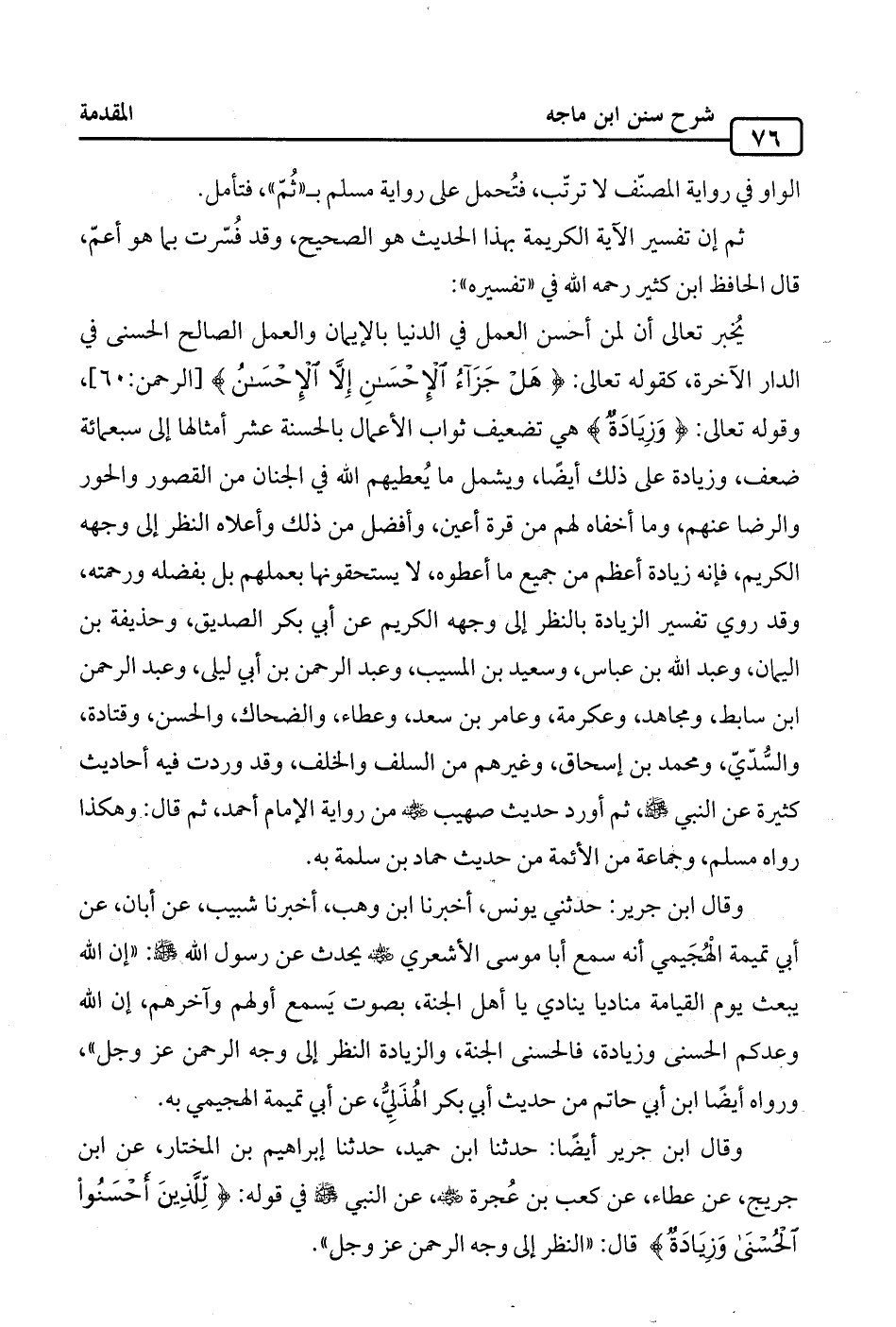 وقال ابن جرير أيضًا: حَدَّثَنَا ابن حميد، حَدَّثَنَا إبراهيم بن المختار، عن ابن جريج، عن عطاء، عن كعب بن عُجرة -رضي الله عنه-، عن النّبيّ -صلى الله عليه وسلم- في قوله: {لِلَّذِينَ أَحْسَنُوا الْحُسْنَى وَزِيَادَةٌ} قال: "النظر إلى وجه الرّحمن -عَزَّ وَجَلَّ-".