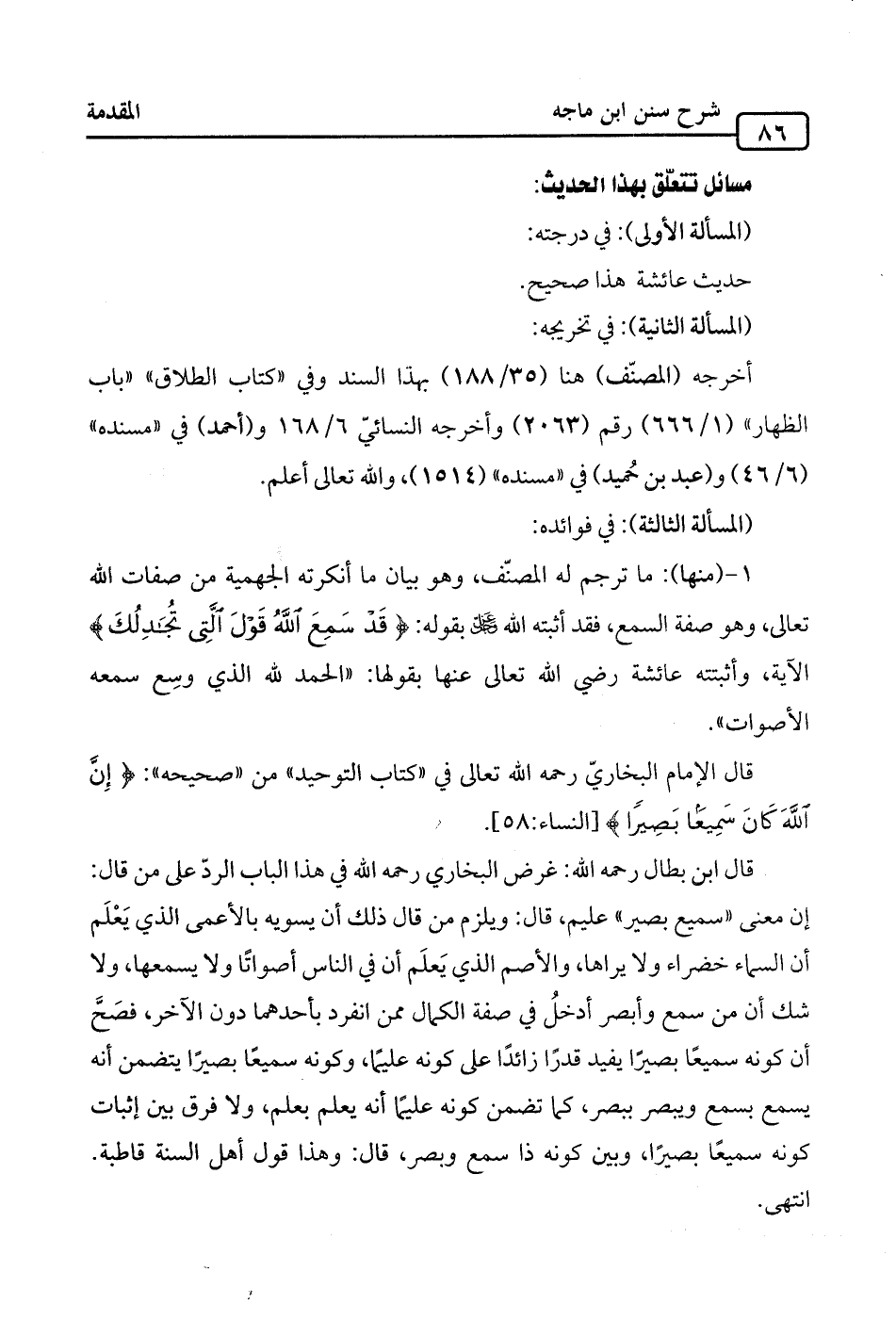 1 - (منها): ما ترجم له المصنّف، وهو بيان ما أنكرته الجهمية من صفات الله تعالى، وهو صفة السميع، فقد أثبته الله -عَزَّ وَجَلَّ- بقوله: {قَدْ سَمِعَ اللَّهُ قَوْلَ الَّتِي تُجَادِلُكَ} الآية، وأثبتته عائشة رضي الله تعالى عنها بقولها: "الحمد لله الّذي وسِع سمعه الأصوات".