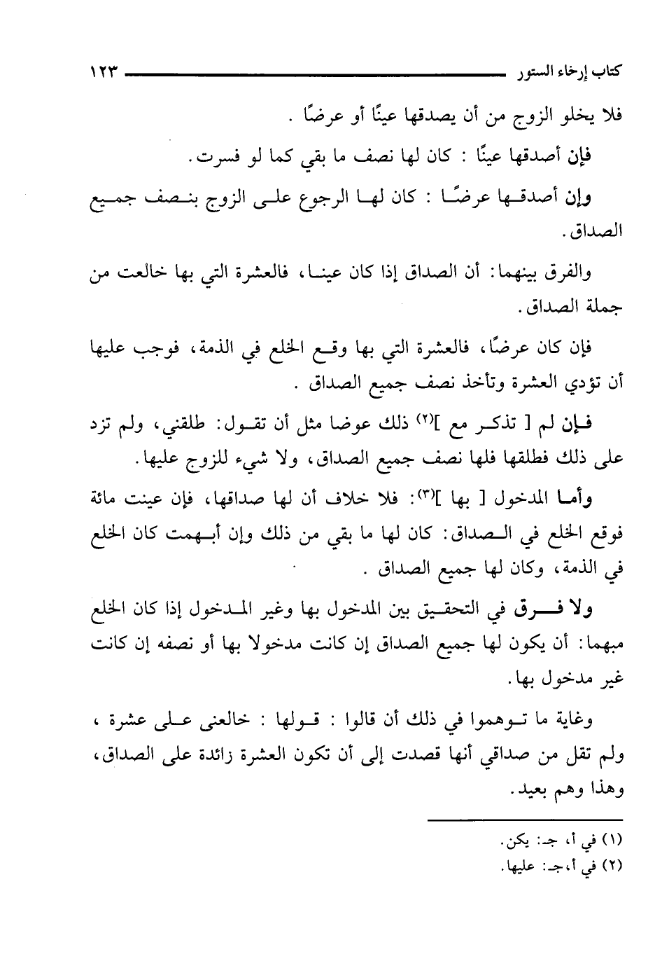 ولا فرق في التحقيق بين المدخول بها وغير المدخول إذا كان الخلع مبهما: أن يكون لها جميع الصداق إن كانت مدخولا بها أو نصفه إن كانت غير مدخول بها.