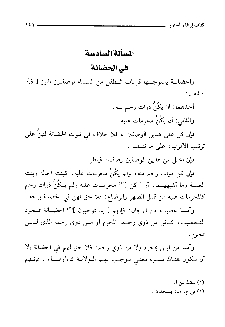 المسألة السادسة في الحضانة