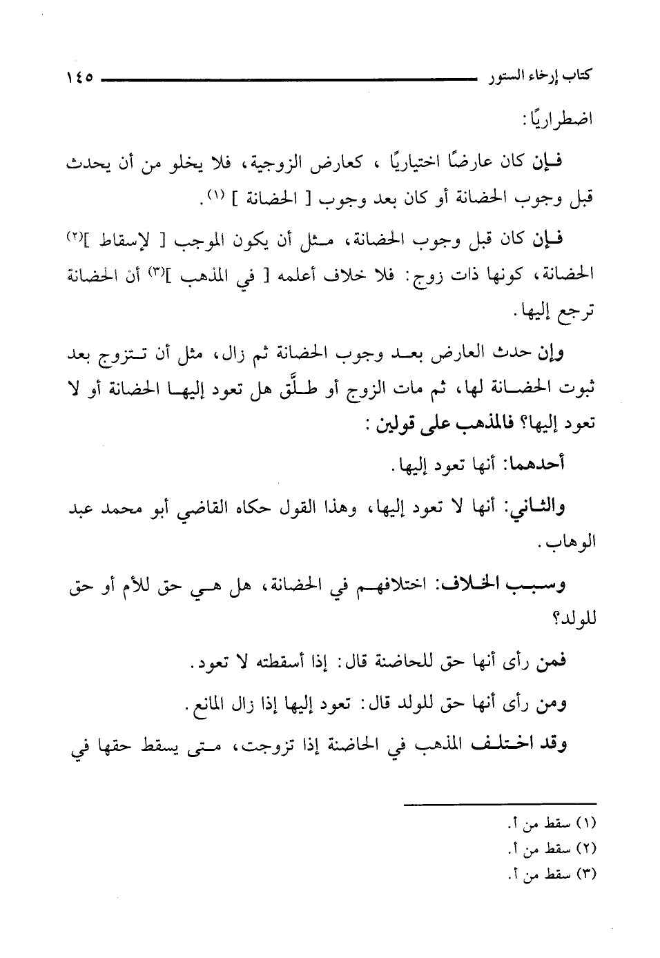 فمن رأى أنها حق للحاضنة قال: إذا أسقطته لا تعود.