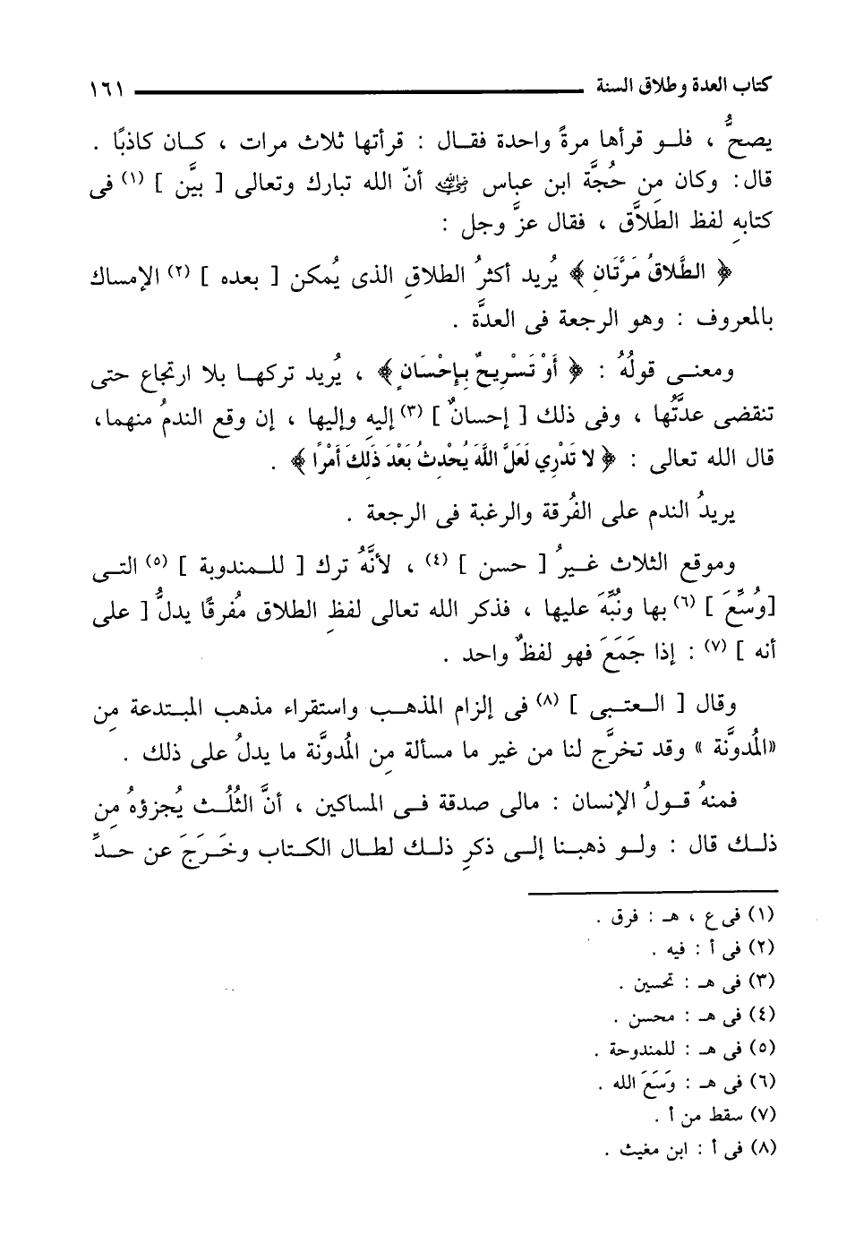 ومعنى قولُهُ: {أَوْ تَسْرِيحٌ بِإِحْسَانٍ}، يُريد تركها بلا ارتجاع حتى تنقضى عدَّتُها، وفي ذلك [إحسانٌ] (¬3) إليه وإليها، إن وقع الندم منهما، قال الله تعالى: {لَا تَدْرِي لَعَلَّ اللَّهَ يُحْدِثُ بَعْدَ ذَلِكَ أَمْرًا}.