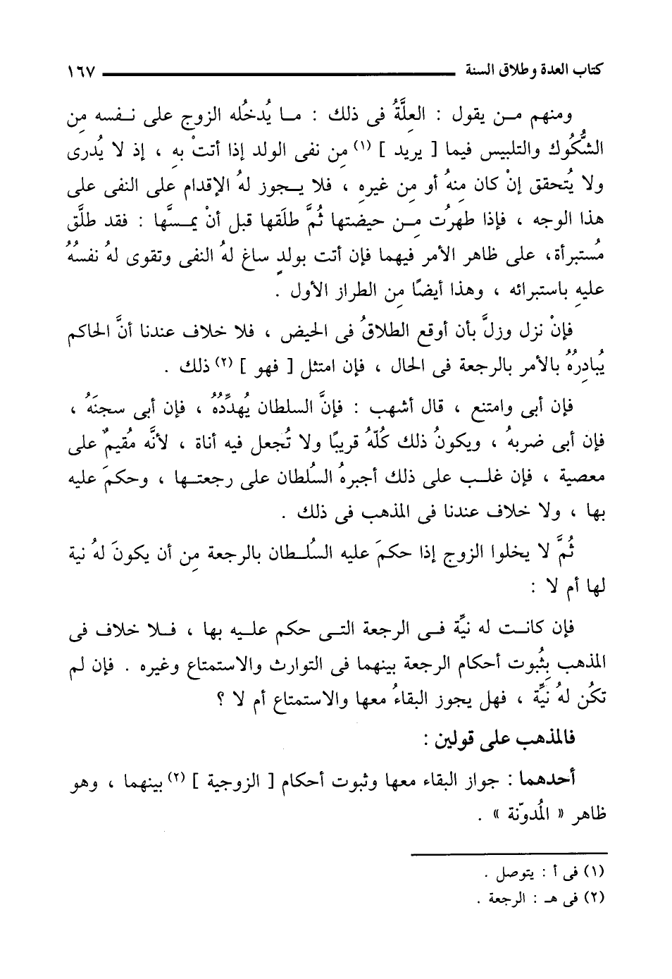 ثُمَّ لا يخلوا الزوج إذا حكمَ عليه السُلطان بالرجعة مِن أن يكونَ لهُ نية لها أم لا: