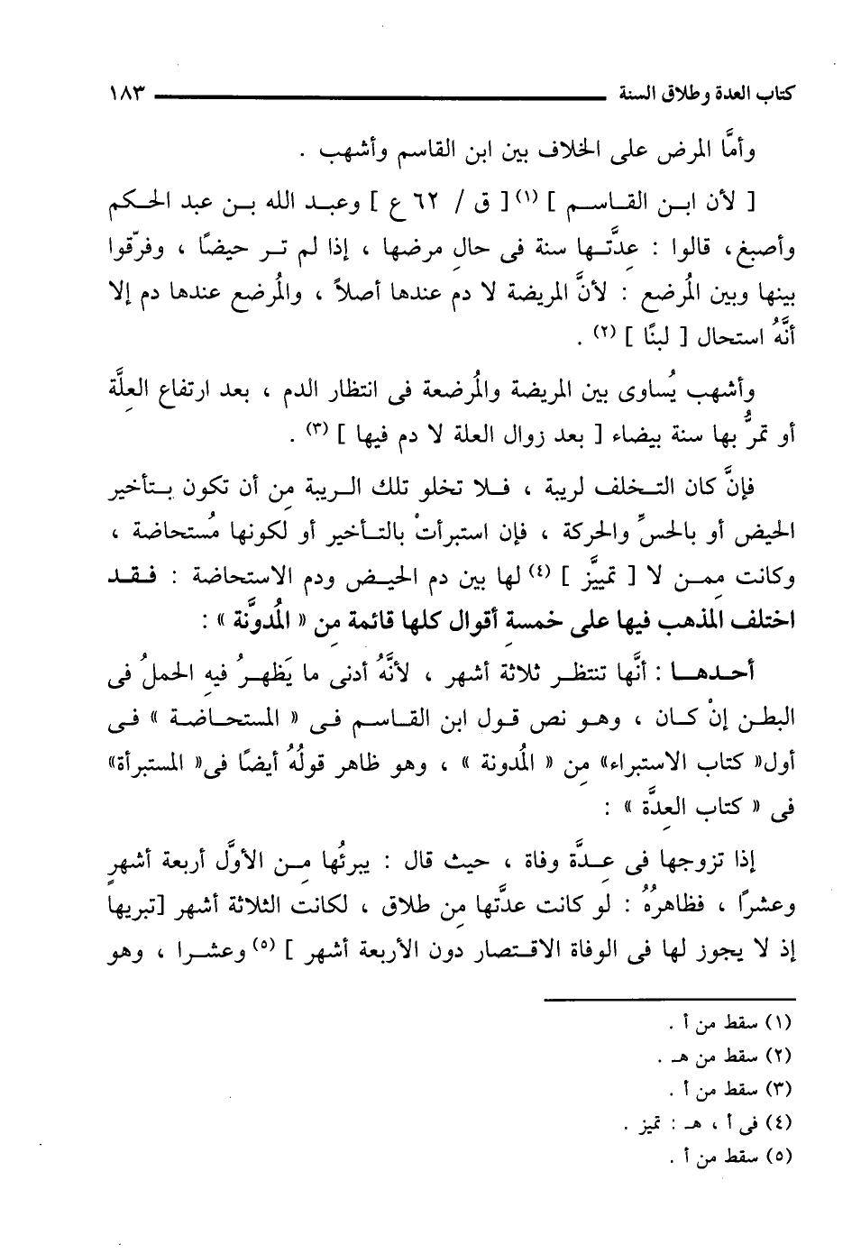 وأشهب يُساوى بين المريضة والمُرضعة في انتظار الدم، بعد ارتفاع العِلَّة أو تمر بها سنة بيضاء [بعد زوال العلة لا دم فيها] (¬3).