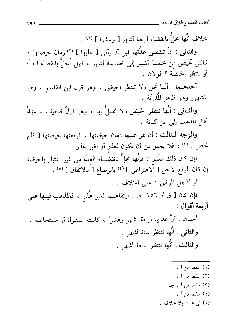 والثانى: أنَّها تنتظر الحيض ولا تحلُّ بها، وهو قولٌ ضعيف، عزاهُ أهل المذهب إلى ابن كنانة.