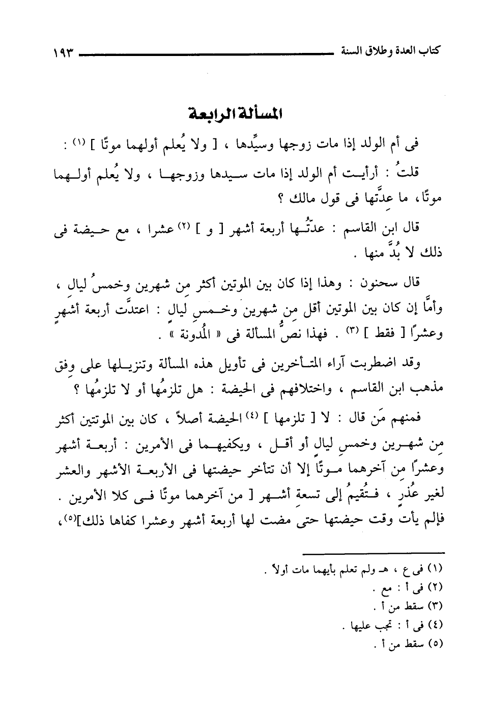المسألة الرابعة