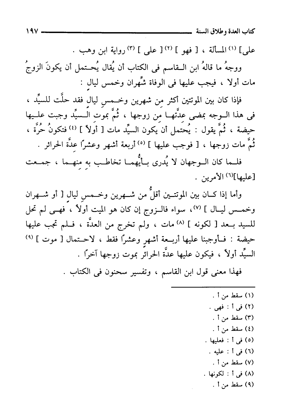 فهذا معنى قول ابن القاسم، وتفسير سحنون في الكتاب.