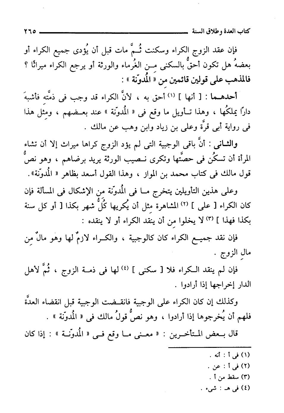 والثانى: أنَّ باقى الوجبية التي لم يؤد الزوج كراها ميراث إلا أن تشاء المرأة أن تسكُن في حصَّتها وتكرى نصيب الورثة يريد برضاهم، وهو نصُّ قول مالك في كتاب محمَّد بن المواز، وهذا القول أسعد بظاهر "المُدوّنة".