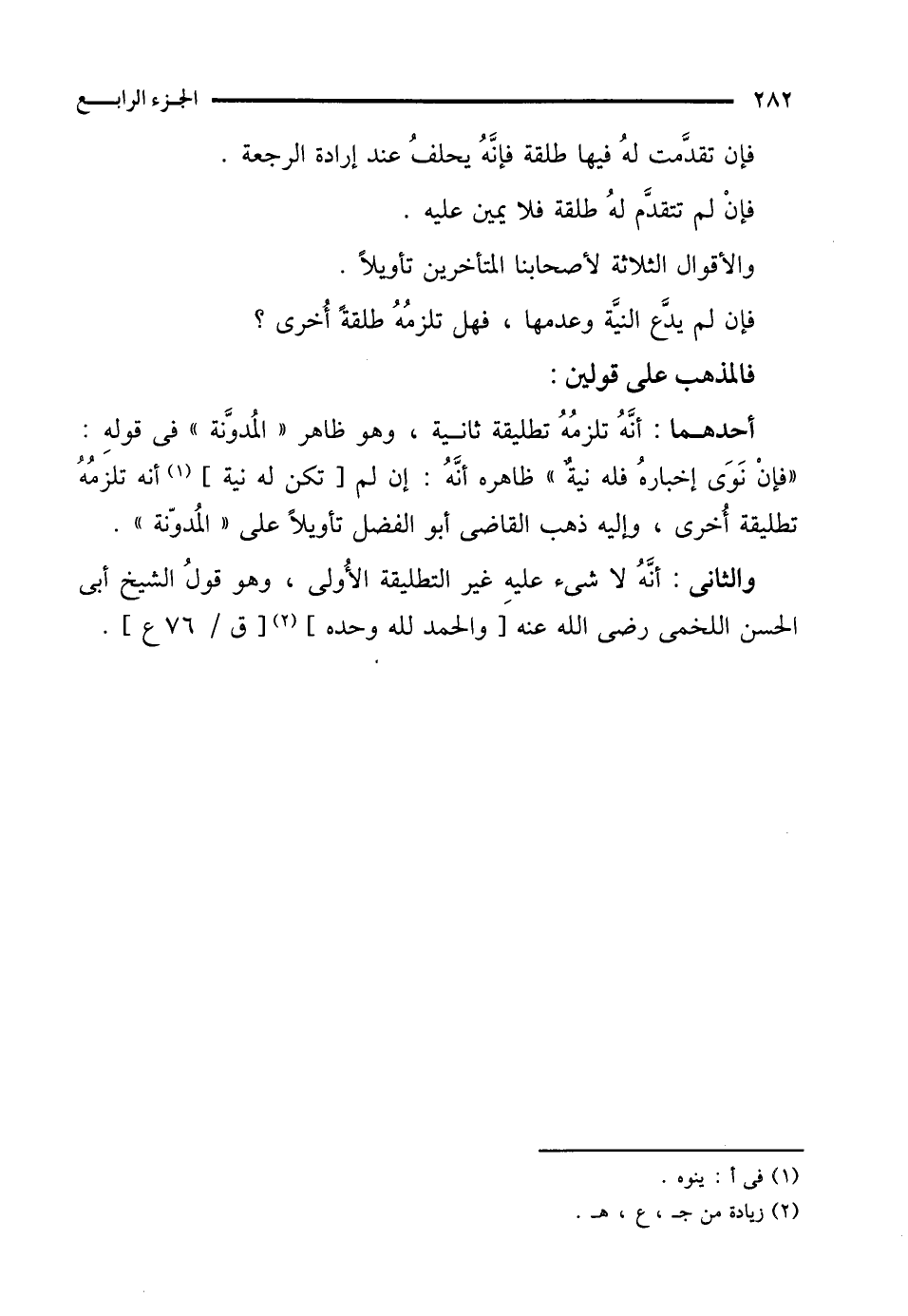 فإن لم يدَّع النيَّة وعدمها، فهل تلزمُهُ طلقةً أُخرى؟
