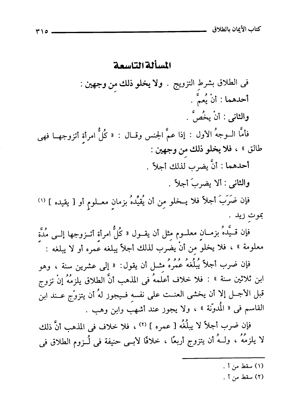 فأمَّا الوجهُ الأول: إذا عمَّ الجنس وقال: "كُلُّ امرأةٍ أتزوجها فهي طالق"، فلا يخلو ذلك مِن وجهين: