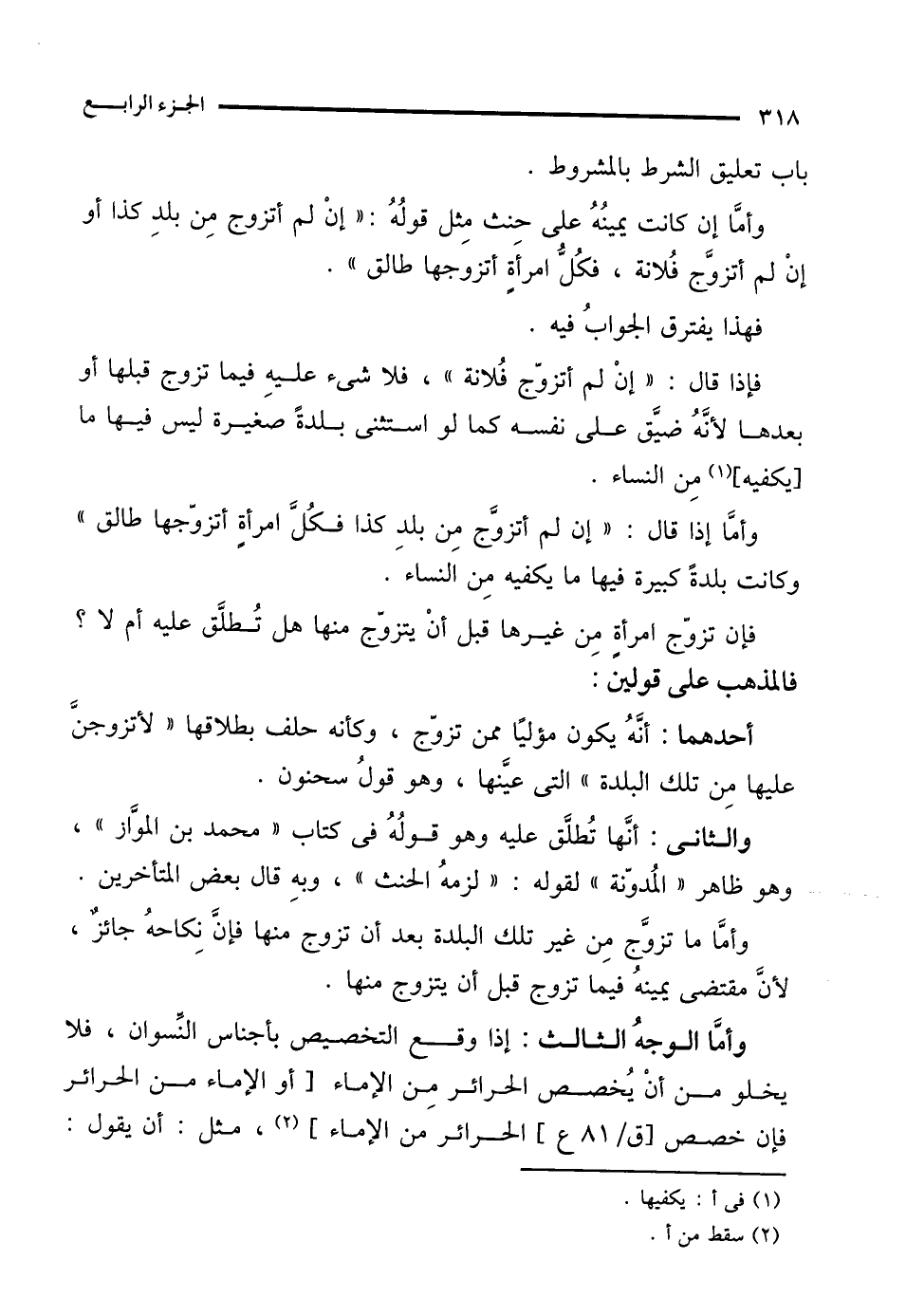 وأمَّا ما تزوَّج مِن غير تلك البلدة بعد أن تزوج منها فإنَّ نِكاحهُ جائزٌ، لأنَّ مقتضى يمينهُ فيما تزوج قبل أن يتزوج منها.