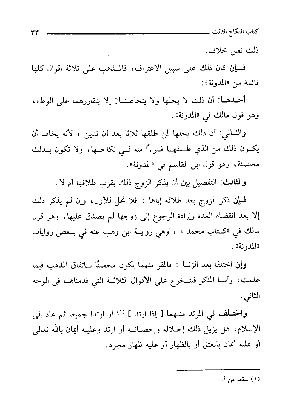 فإن كان ذلك على سبيل الاعتراف، فالمذهب على ثلاثة أقوال كلها قائمة من "المدونة":