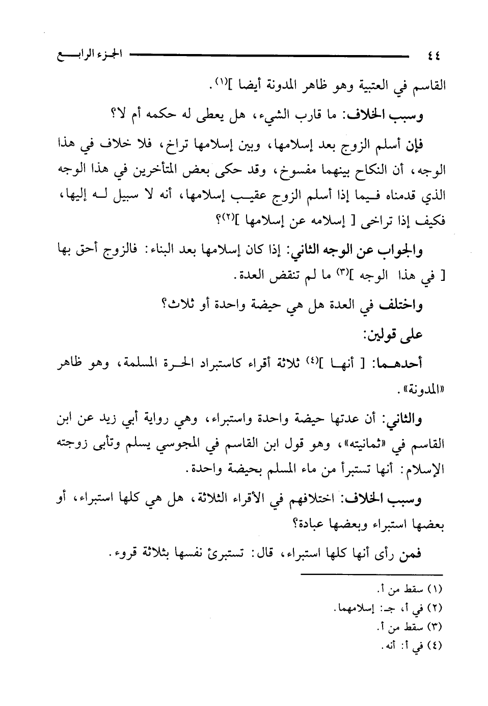 كتاب مناهج التحصيل ونتائج لطائف التأويل في شرح المدونة وحل مشكلاتها (اسم الجزء: 4)