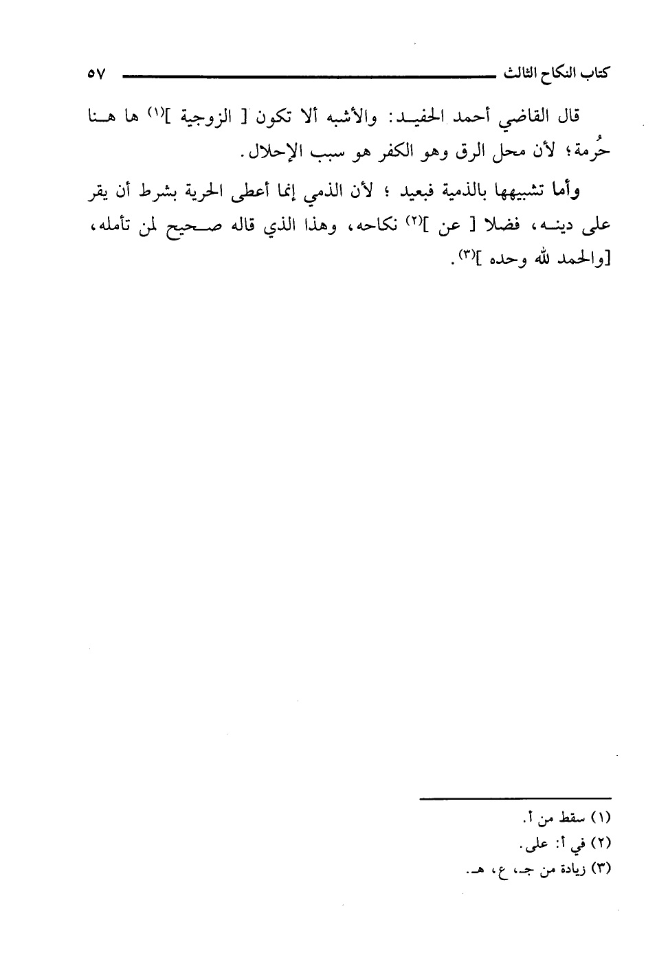 وأما تشبيهها بالذمية فبعيد؛ لأن الذمي إنما أعطى الحرية بشرط أن يقر على دينه، فضلا [عن] (¬2) نكاحه، وهذا الذي قاله صحيح لمن تأمله، [والحمد لله وحده] (¬3).