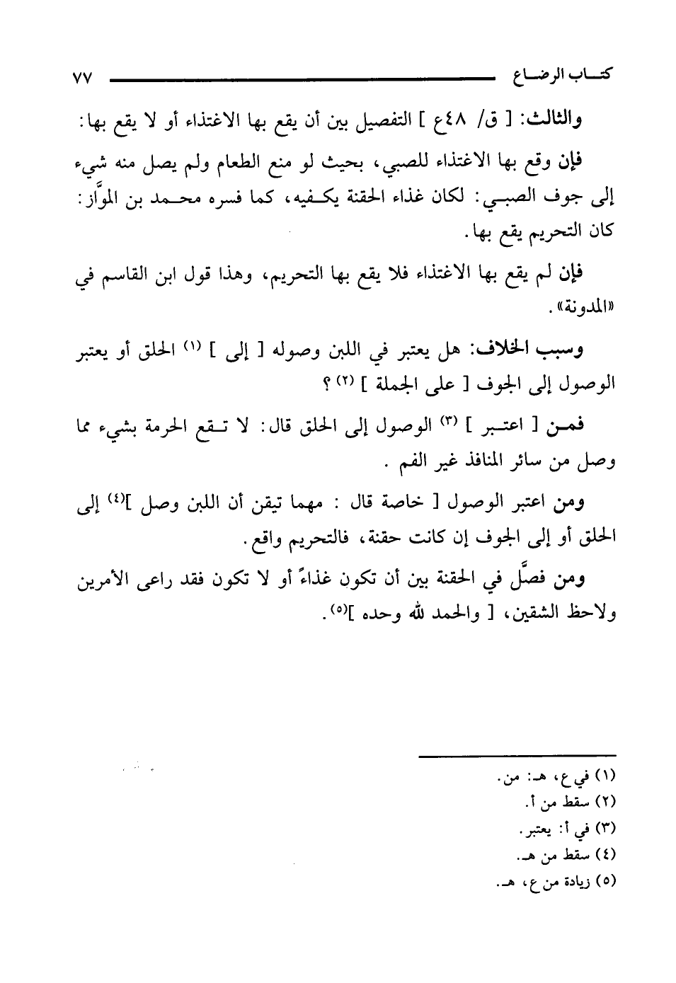 ومن فصَّل في الحقنة بين أن تكون غذاءً أو لا تكون فقد راعى الأمرين ولاحظ الشقين، [والحمد لله وحده] (¬5).