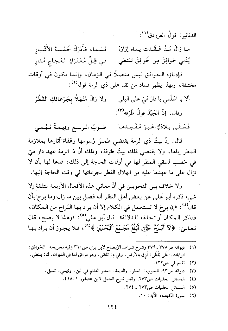 ولا خلاف بين النحويين في أن معاني هذه الأفعال الأربعة متفقة إلا شيء ذكره أبو علي عن بعض أهل النظر أنه فصل بين ما زال وما برح بأن قال: "إن برح لا تستعمل في الكلام إلا أن يراد بها البراح من المكان، فتذكر المكان أو تحذفه للدلالة". قال أبو علي: "وهذا لا يصح، قال تعالى: {لا أَبْرَحُ حَتَّى أَبْلُغَ مَجْمَعَ البَحْرَيْنِ}، فلا يجوز أن يراد بها