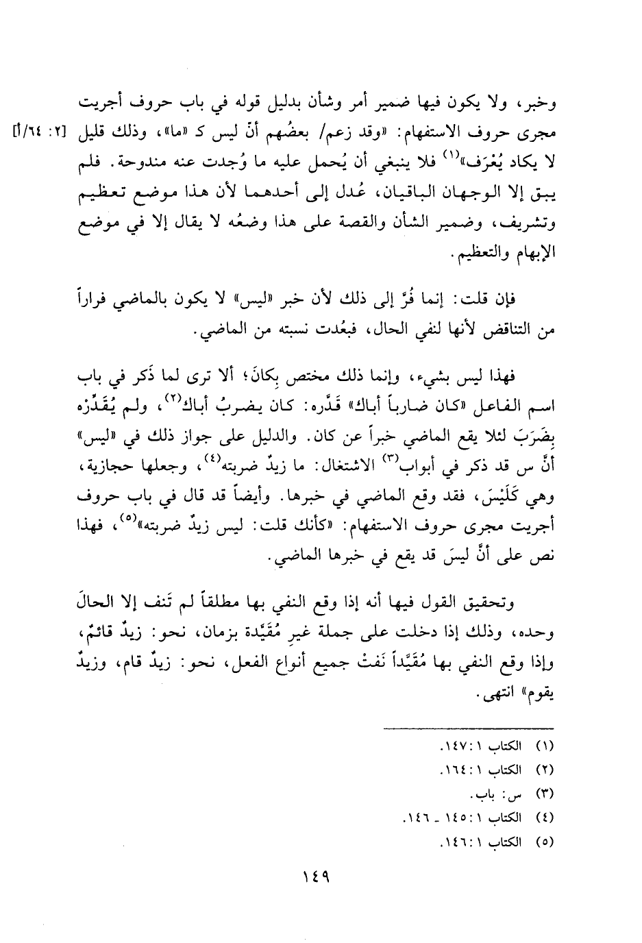 فإن قلت: إنما فر إلى ذلك لأن خبر "ليس" لا يكون بالماضي فرارًا من التناقض لأنها لنفس الحال، فبعدت نسبته من الماضي.