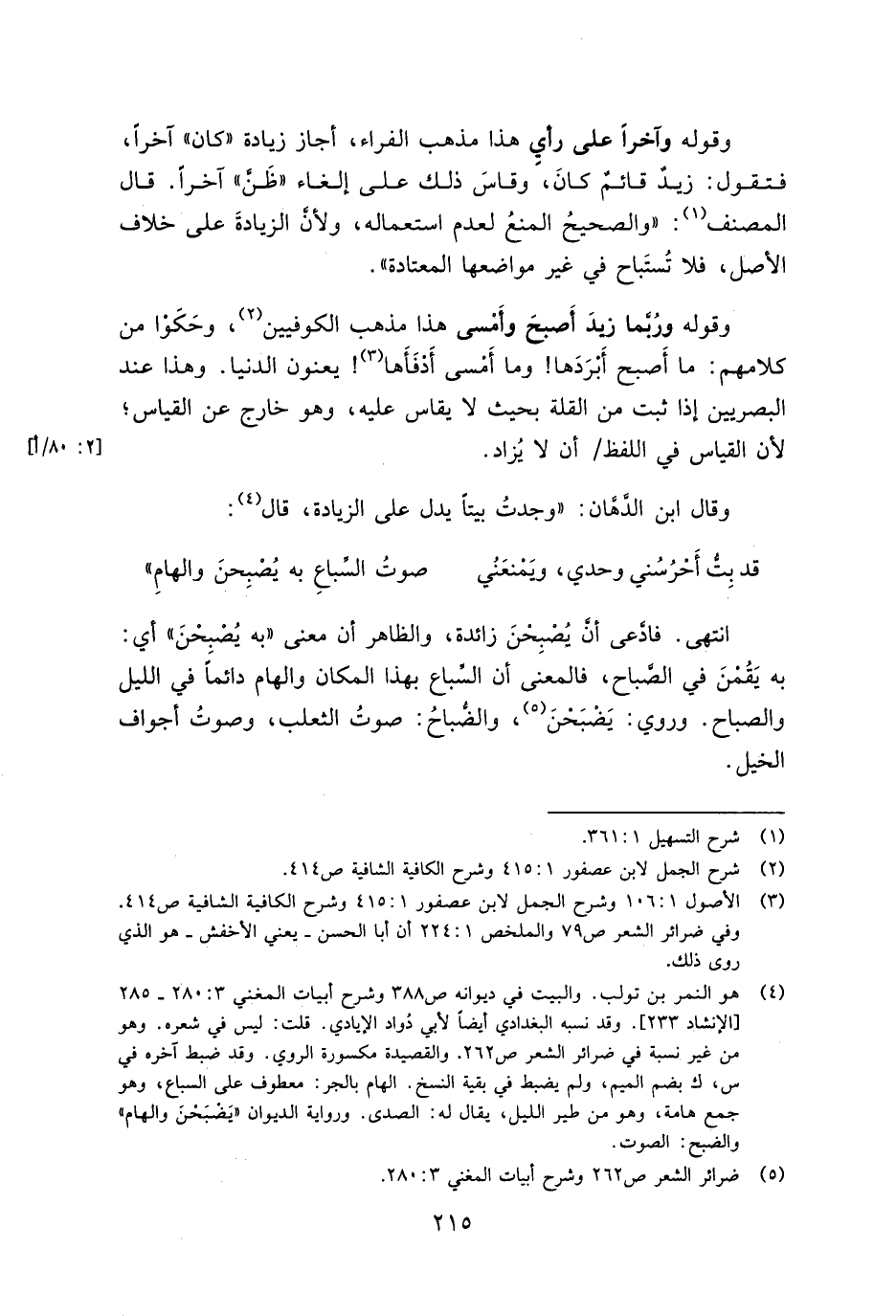 وقوله وربما زيد أصبح وأمسى هذا مذهب الكوفيين, وحكوا من كلامهم: ما أصبح أبردها! وما أمسى أدفأها يعنون الدنيا, وهذا عند البصريين إذا ثبت من القلة بحيث لا يقاس عليه, وهو خارج عن القياس, لأن القياس في اللفظ أن لا يزاد.