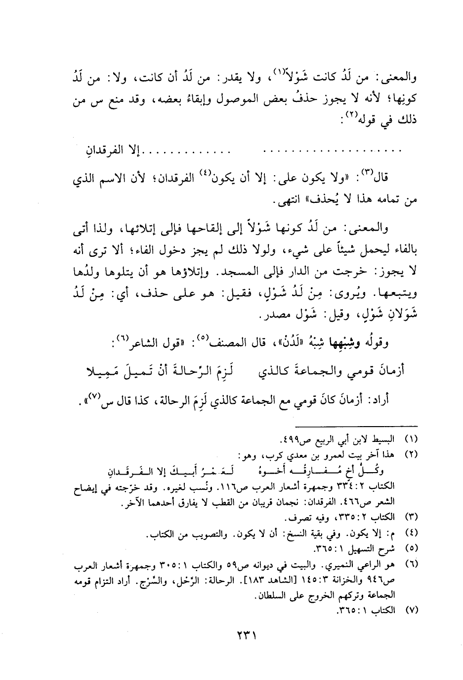 والمعنى: من لد كانت شولا، ولا يقدر: من لد أن كانت، ولا: من لد كونها؛ لأنه لا يجوز حذف بعض الموصول وإبقاء بعضه، وقد منع س من ذلك في قوله: