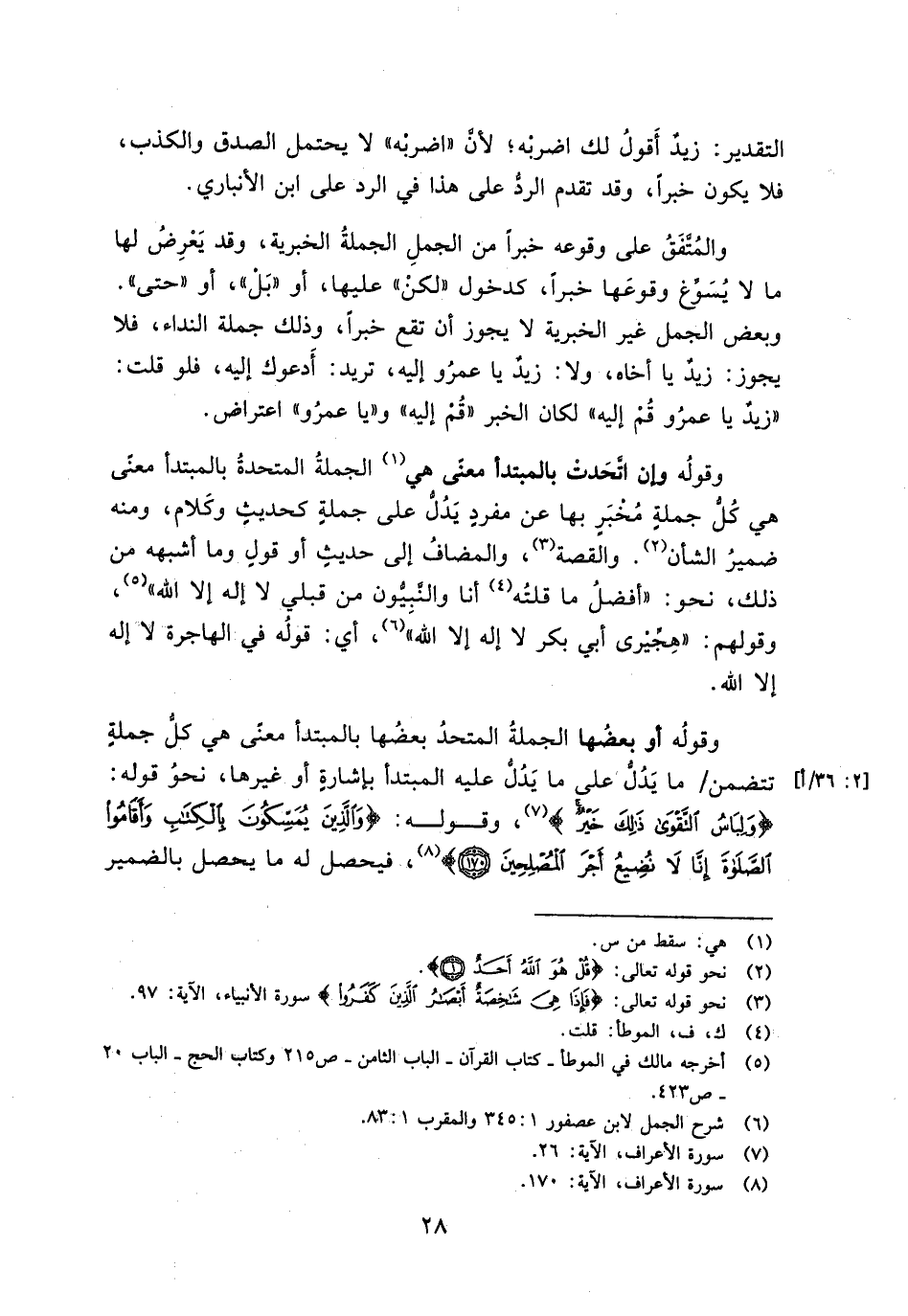 وقوله أو بعضها الجملة المتحد بعضها بالمبتدأ معنى هي كل جملة تتضمن/ ما يدل على ما يدل عليه المبتدأ بإشارة أو غيرها، نحو قوله: (وَلِبَاسُ التَّقْوَى ذَلِكَ خَيْرٌ)، وقوله: (وَالَّذِينَ يُمَسِّكُونَ بِالْكِتَابِ وَأَقَامُوا الصَّلَاةَ إِنَّا لَا نُضِيعُ أَجْرَ الْمُصْلِحِينَ)، فيحصل له ما يحصل بالضمير