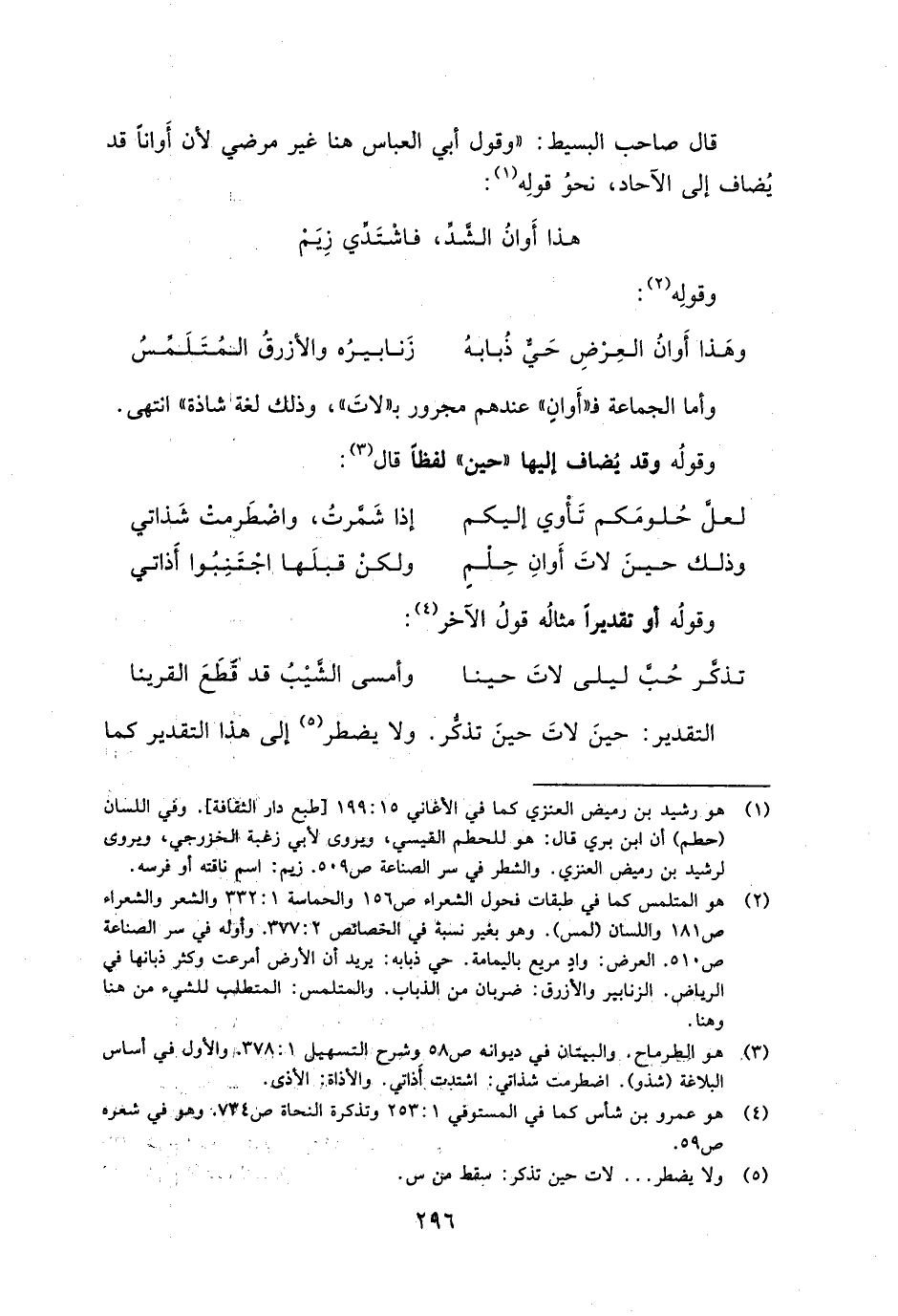 قال صاحب البسيط:" وقول أبي العباس هنا غير مرضي لأن أواناً قد يضاف إلى الآحاد نحو قوله: