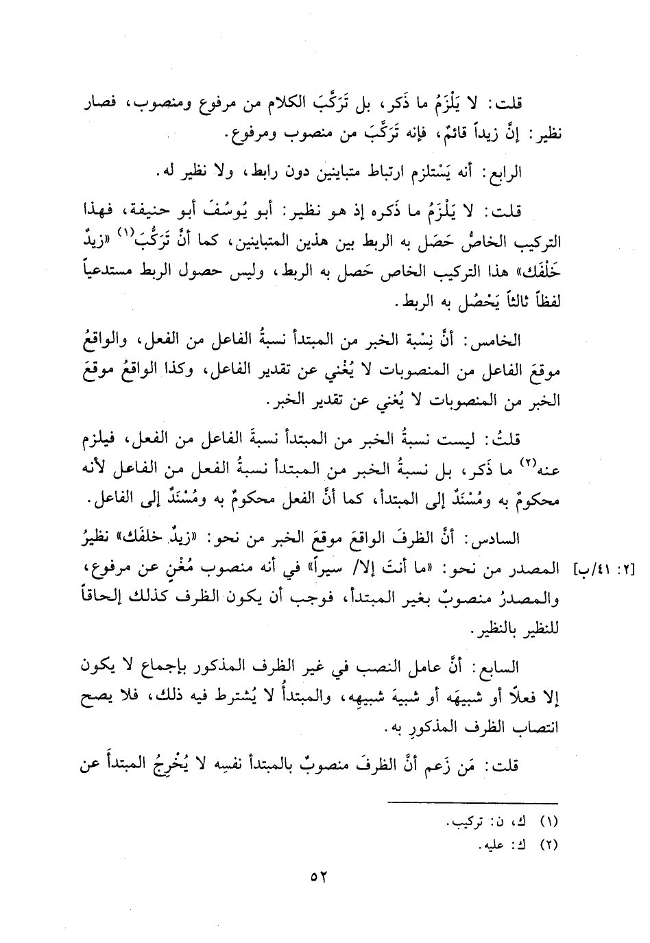 قلت: لا يلزم ما ذكره إذ هو نظير: أبو يوسف أبو حنيفة، فهذا التركيب الخاص حصل به الربط بين هذين المتباينين، كما أن تركب "زيد خلفك" هذا التركيب الخاص حصل به الربط، وليس حصول الربط مستدعيًا لفظًا ثالثًا يحصل به الربط.