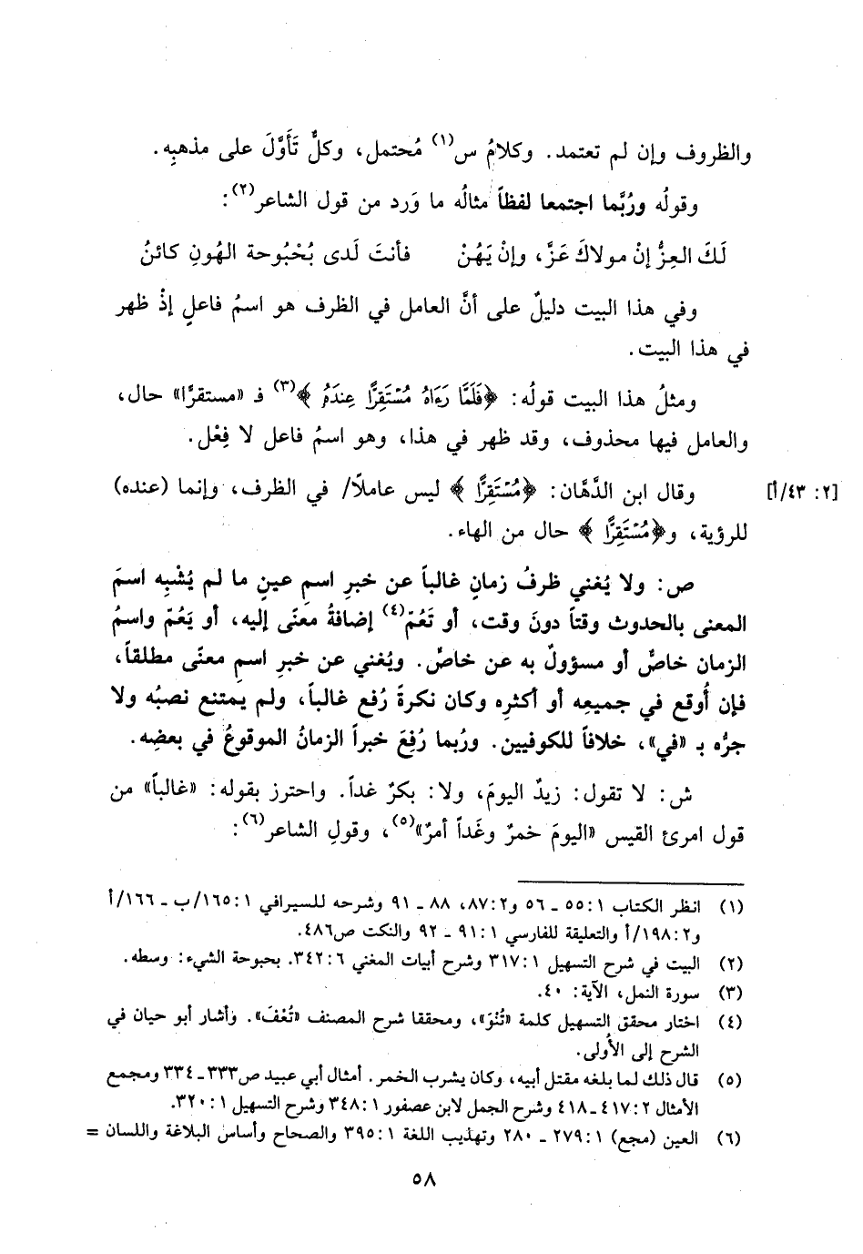 ومثل هذا البيت قوله: {فَلَمَّا رَآهُ مُسْتَقِرًا عِندَهُ} فـ"مستقرًا" حال، والعامل فيها محذوف، وقد ظهر في هذا، وهو امس فاعل لا فعل.