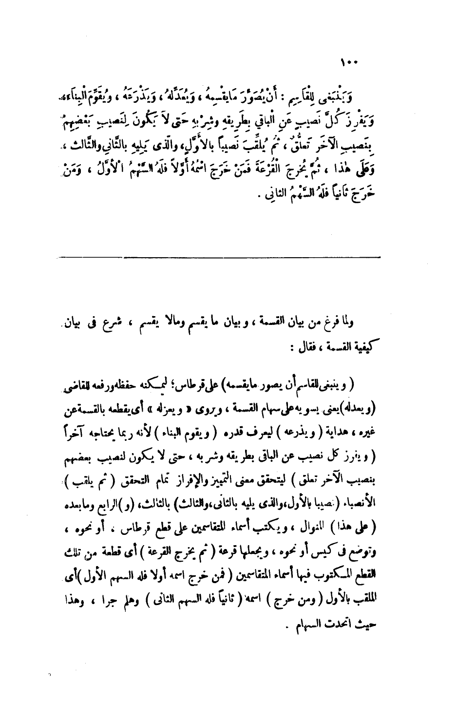 ولما فرغ من بيان القسمة، وبيان ما يقسم ومالا يقسم، شرع في بيان كيفية القسمة، فقال:.