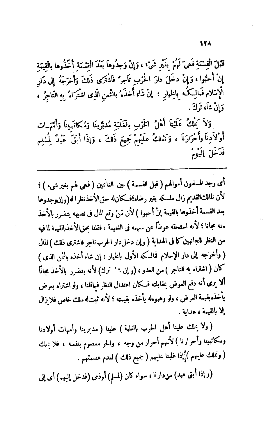 ولا يملك علينا أهل الحرب بالغلبة مدبرينا ومكاتبينا وأمهات أولادنا وأحرارنا، ونملك عليهم جميع ذلك، وإذا أبق عبدٌ لمسلم فدخل إليهم