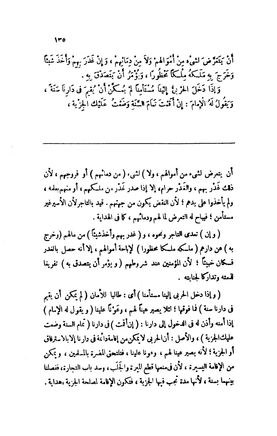 أن يتعرض لشيٍ من أموالهم ولا من دمائهم، وإن غدر بهم وأخذ شيئاً وخرج به ملكه ملكاً محظوراً، ويؤمر أن يتصدق به.