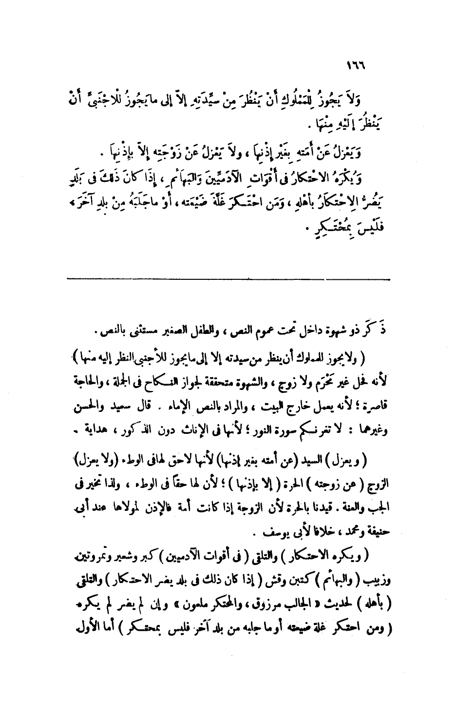 ولا يجوز للمملوك أن ينظرمن سيدته إلا إلى ما يجوز للأجنبي أن ينظر إليه منها.