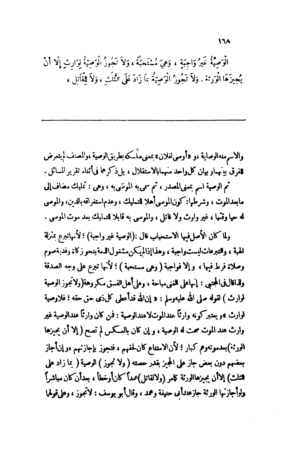 - الوصية غير واجبةٍ، وهي مستحبةٌ، ولا تجوز الوصية لوارثٍ إلا أن يجيزها الورثة. ولا تجوز الوصية بما زاد على الثلث، ولا للقاتل،