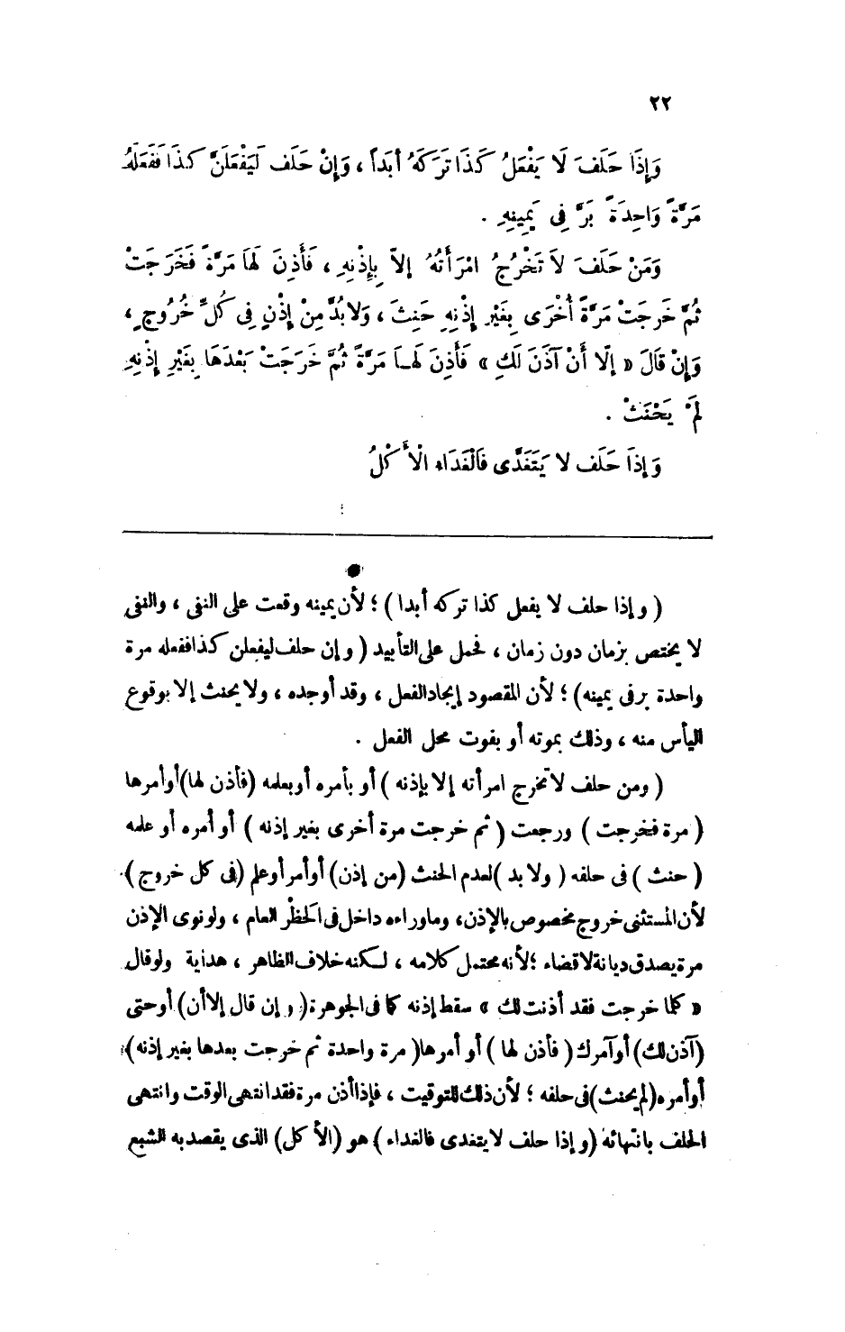 ومن حلف لا تخرج امرأته إلا بإذنه، فأذن لها مرةً فخرجت ثم خرجت مرةً أخرى بغير إذنه حنث، ولابد من إذن في كل خروجٍ، وإن قال "إلا أن آذن لك" فأذن لها مرةً ثم خرجت بعدها بغير إذنه لم يحنث.