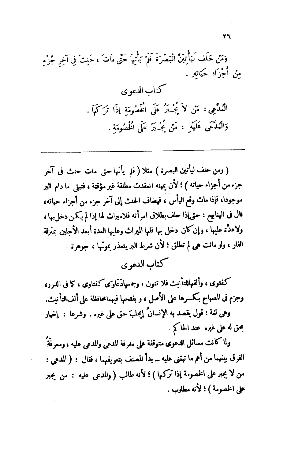 ولما كانت مسائل الدعوى متوقفة على معرفة المدعى والمدعى عليه، ومعرفة الفرق بينهما من أهم ما تبتنى عليه - بدأ المصنف بتعريفهما، فقال: (المدعى: من لا يجبر على الخصومة إذا تركها) ؛ لأنه طالب (والمدعى عليه: من يجبر على الخصومة) ؛ لأنه مطلوب