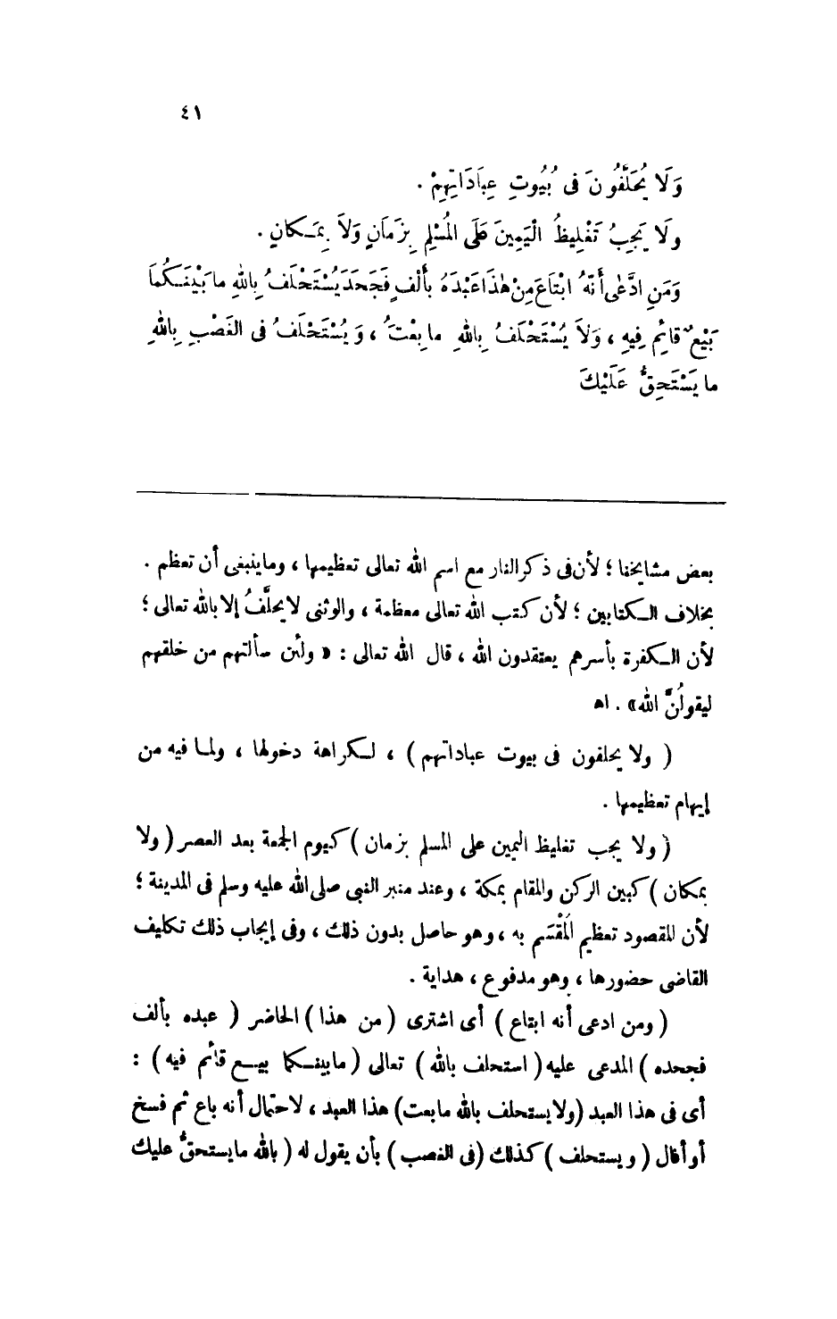 ولا يجب تغليظ اليمين على المسلم بزمانٍ ولا بمكانٍ.