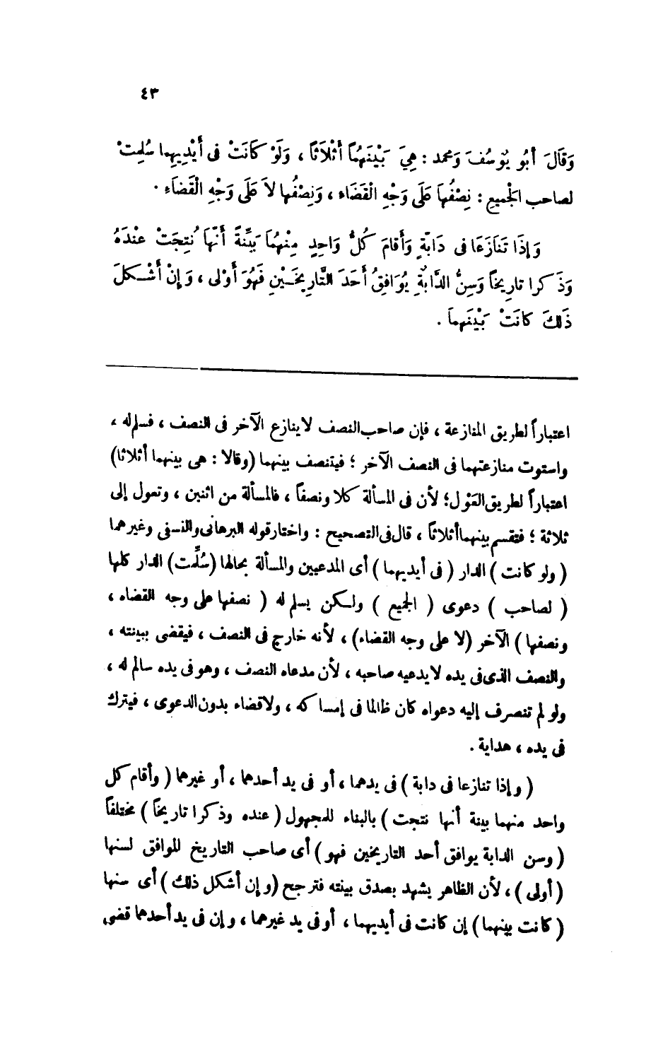 وإذا تنازعا في دابةٍ وأقام كل واحدٍ منهما بينةً أنها نتجت عنده وذكرا تاريخاً وسن الدابة يوافق التاريخين فهو أولى، وإن أشكل ذلك كانت بينهما.
