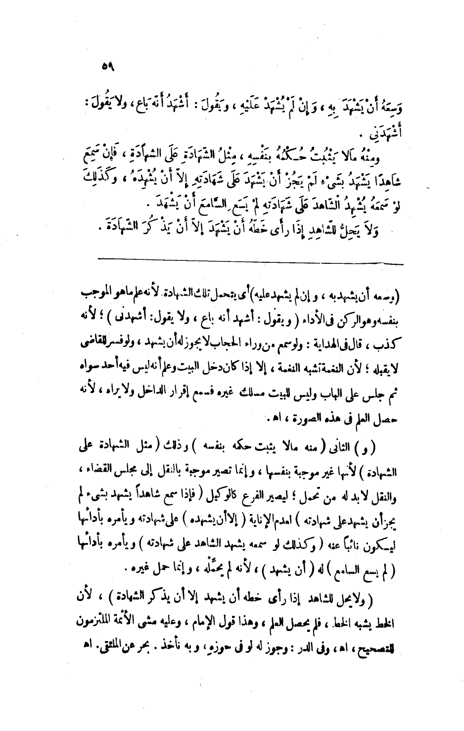 ومنه ما لا يثبت حكمه بنفسه، مثل الشهادة على الشهادة، فإن سمع شاهداً يشهد بشيء لم يجز أن يشهد على شهادته إلا أن يشهده، وكذلك لو سمعه يشهد الشاهد على شهادته لم يسع السامع أن يشهد.