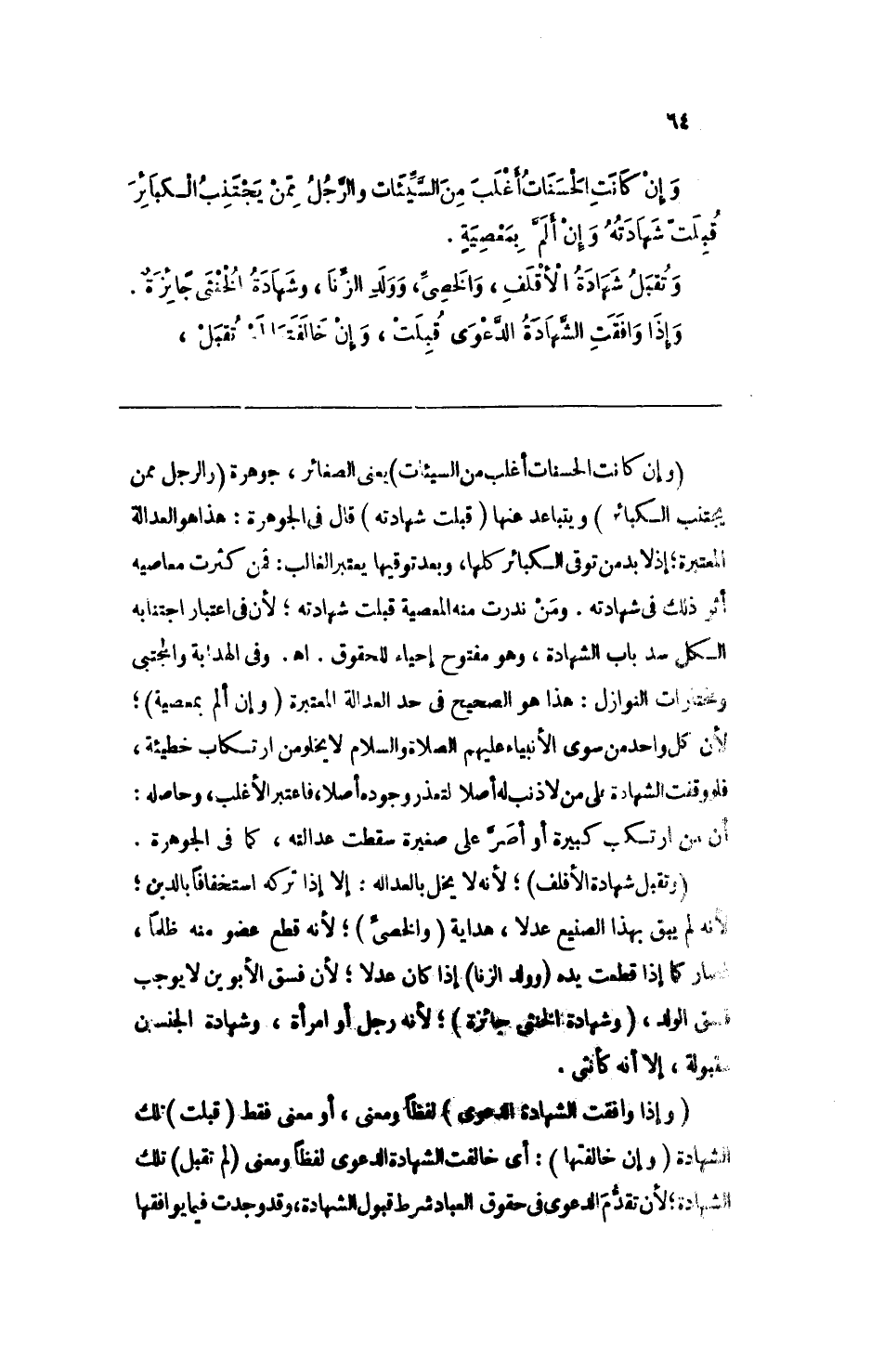 (وتقبل شهادة الأقلف) ؛ لأنه لا يخل بالعدالة؛ إلا إذا تركه استخفافاً بالدين؛ لأنه لم يبق بهذا الصنيع عدلا، هداية (والخصي) ؛ لأنه قطع عضو منه ظلماً، فصار كما إذا قطعت يده (وولد الزنا) إذا كان عدلا؛ لأن فسق الأبوين لا يوجب فسق الولد، (وشهادة الخنثى جائزة) ؛ لأنه رجل أو امرأة، وشهادة الجنسين مقبولة، إلا أنه كأنثى.