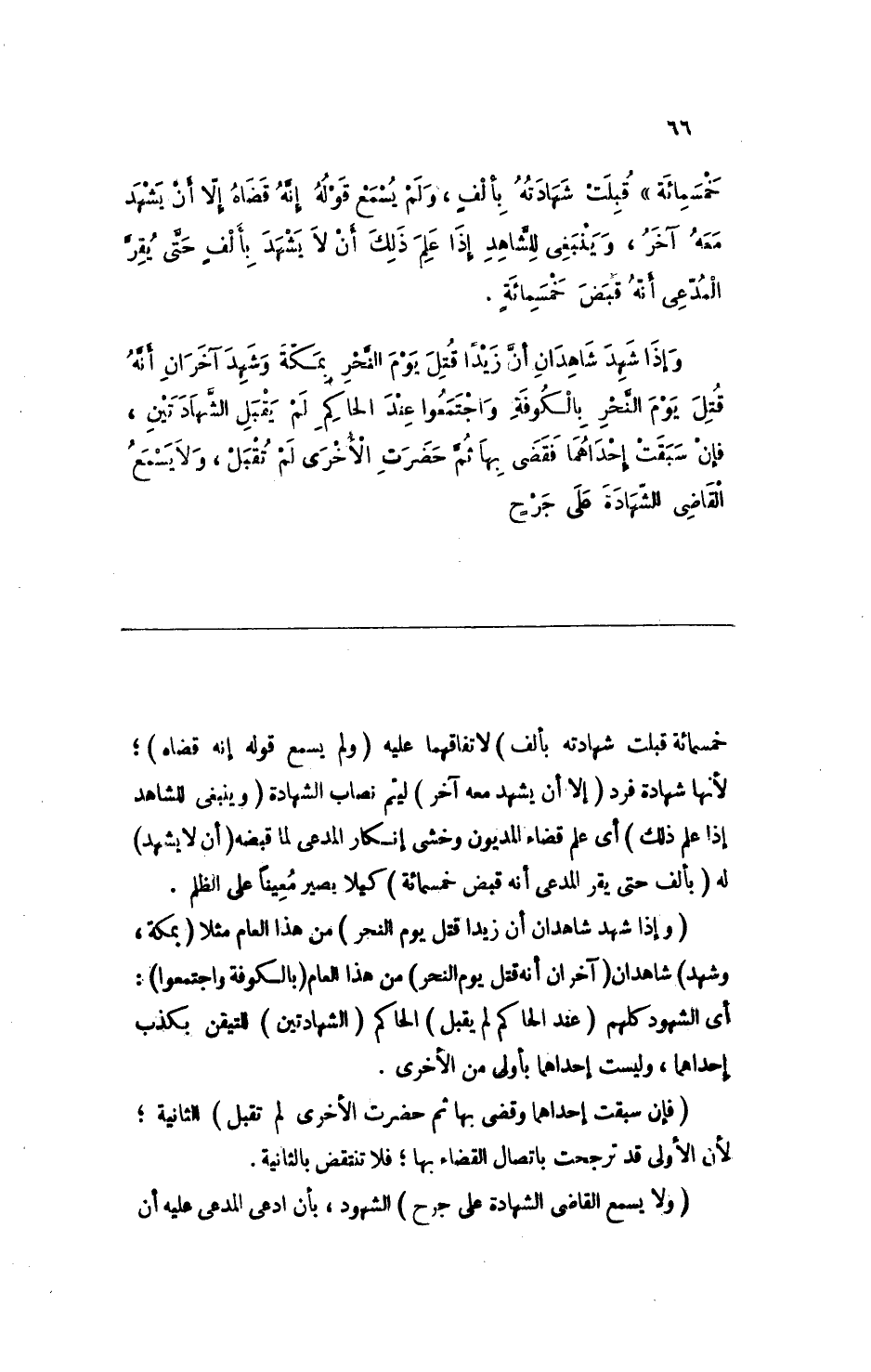 وإذا شهد شاهدان أن زيداً قتل يوم النحر بمكة وشهد آخران أنه قتل يوم النحر بالكوفة واجتمعوا عند الحاكم لم يقبل الشهادتين، فإن سبقت إحداهما فقضي بها ثم حضرت الأخرى لم تقبل، ولا يسمع القاضي الشهادة على جرحٍ