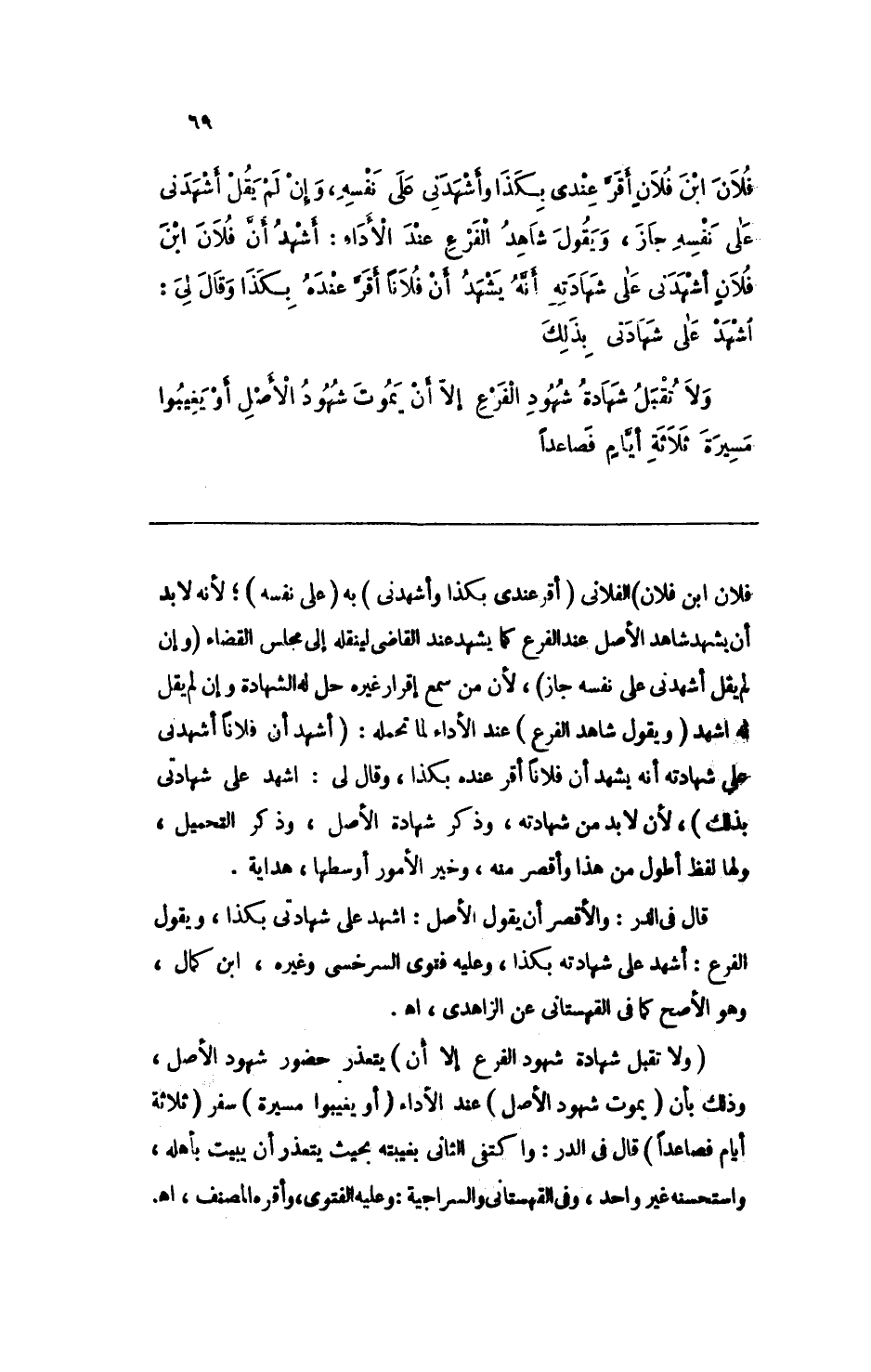 ولا تقبل شهادة شهود الفرع إلا أن يموت شهود الأصل أو يغيبوا مسيرة ثلاثة أيامٍ فصاعداً