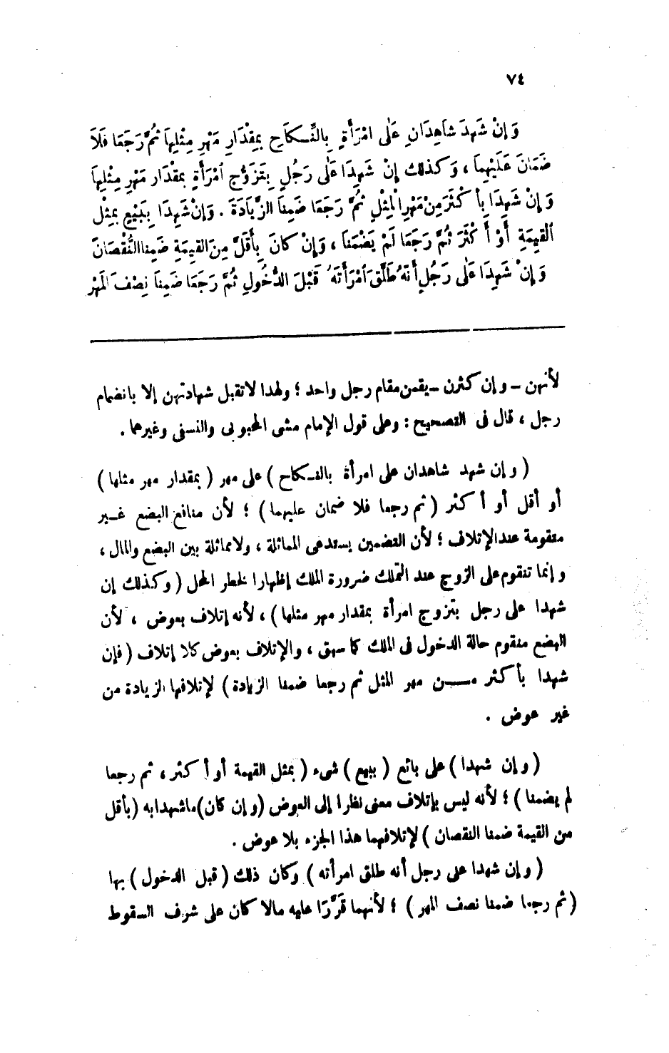 وإن شهد شاهدان على امرأةٍ بالنكاح بمقدار مهر مثلها ثم رجعا فلا ضمان عليهما، وكذلك إن شهدا على رجلٍ بتزوج امرأةٍ بمقدار مهر مثلها وإن شهدا بأكثر من مهر المثل ثم رجعا ضمناً الزيادة. وإن شهدا ببيعٍ بمثل القيمة أو أكثر ثم رجعا لم يضمنا، وإن كان بأقل من القيمة ضمنا النقصان وإن شهدا على رجلٍ أنه طلق امرأته قبل الدخول ثم رجعا ضمنا نصف المهر