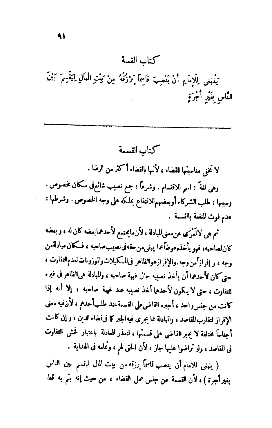 - ينبغي للإمام أن ينصب قاسماً يرزقه من بيت المال ليقسم بين الناس بغير أجرةٍ.
