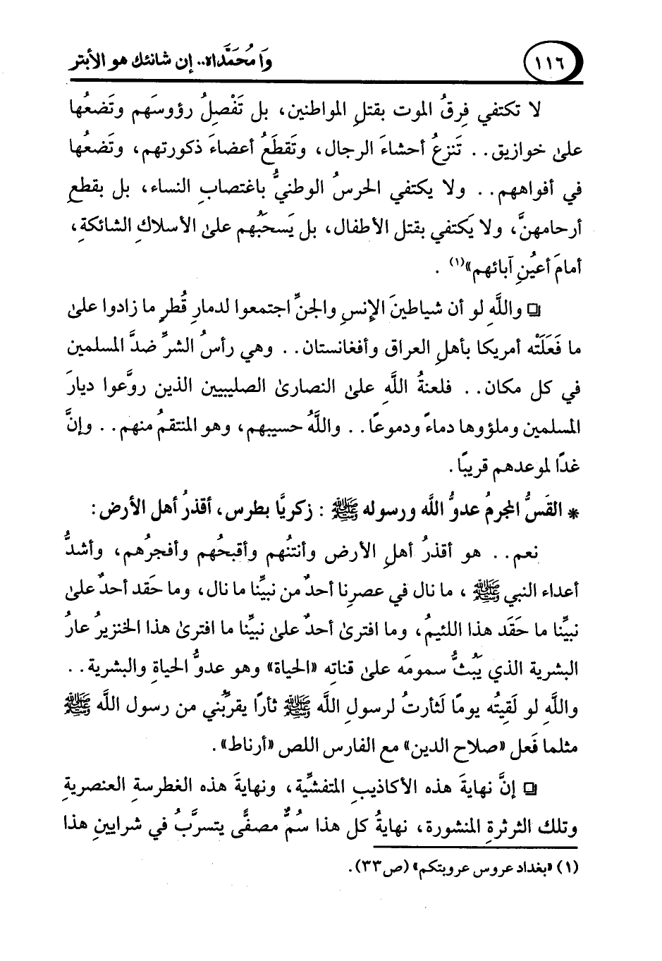 (¬1) "بغداد عروس عروبتكم" (ص 33).
