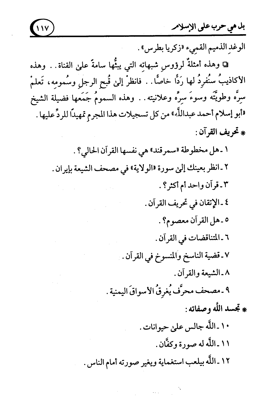 ° وهذه أمثلةٌ لرؤوسِ شبهاتِه التي يبثها سامةً على القناة .. وهذه الأكاذيبُ سنُفرِدُ لها رَدًّا خاصًّا .. فانظرْ إلى قُبح الرجل وسُمومِه، تَعلمْ سِرَّه وطويَّته وسوءَ سِرِّه وعلانيته .. وهذه السمومُ جَمَعها فضيلة الشيخ "أبو إسلام أحمد عبد الله" من كل تسجيلات هذا المجرم تمهيدًا للردّ عليها.