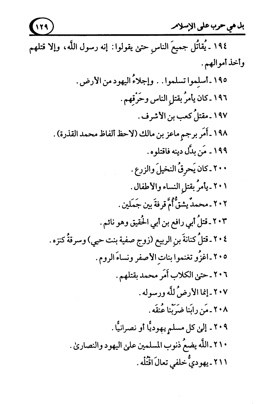 194 - يُقاتُل جميعَ الناسِ حتى يقولوا: إنه رسول الله، وإلا قتلهم وأخذ أموالهم.