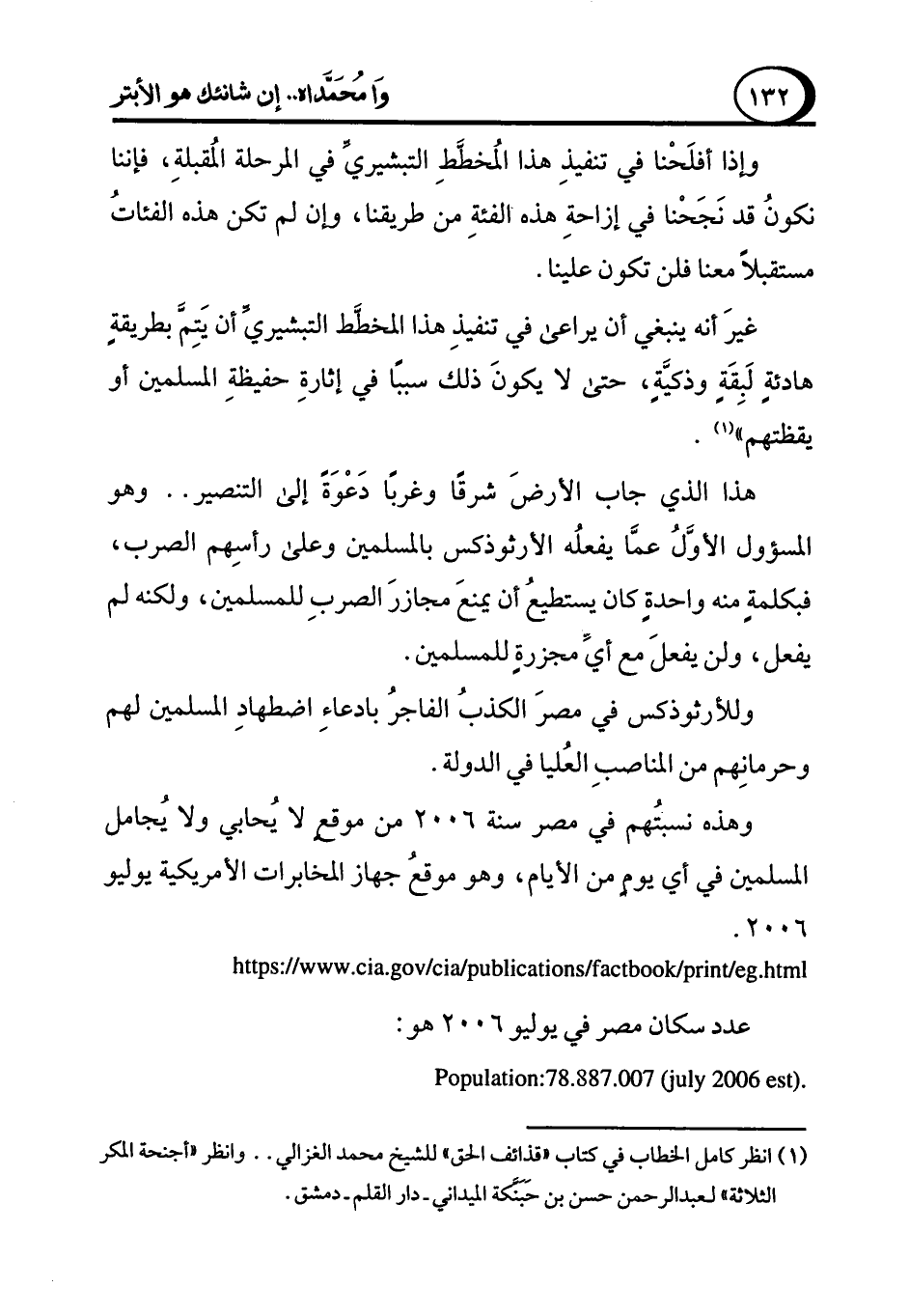 (¬1) انظر كامل الخطاب في كتاب "قذائف الحق" للشيخ محمد الغزالي .. وانظر "أجنحة المكر الثلاثة" لعبد الرحمن حسن بن حَبنكَة الميداني -دار القلم- دمشق.