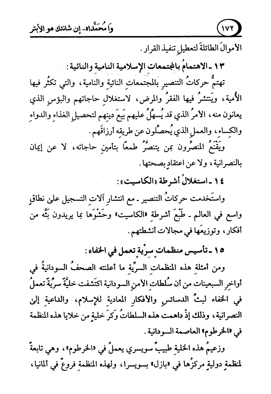 ويَقْنَعُ المنصِّرون بمن يتنصَّرُ طمعًا بتأمينِ حاجاته، لا عن إيمان بالنصرانية، ولا عن اعتقادٍ بصحتها.