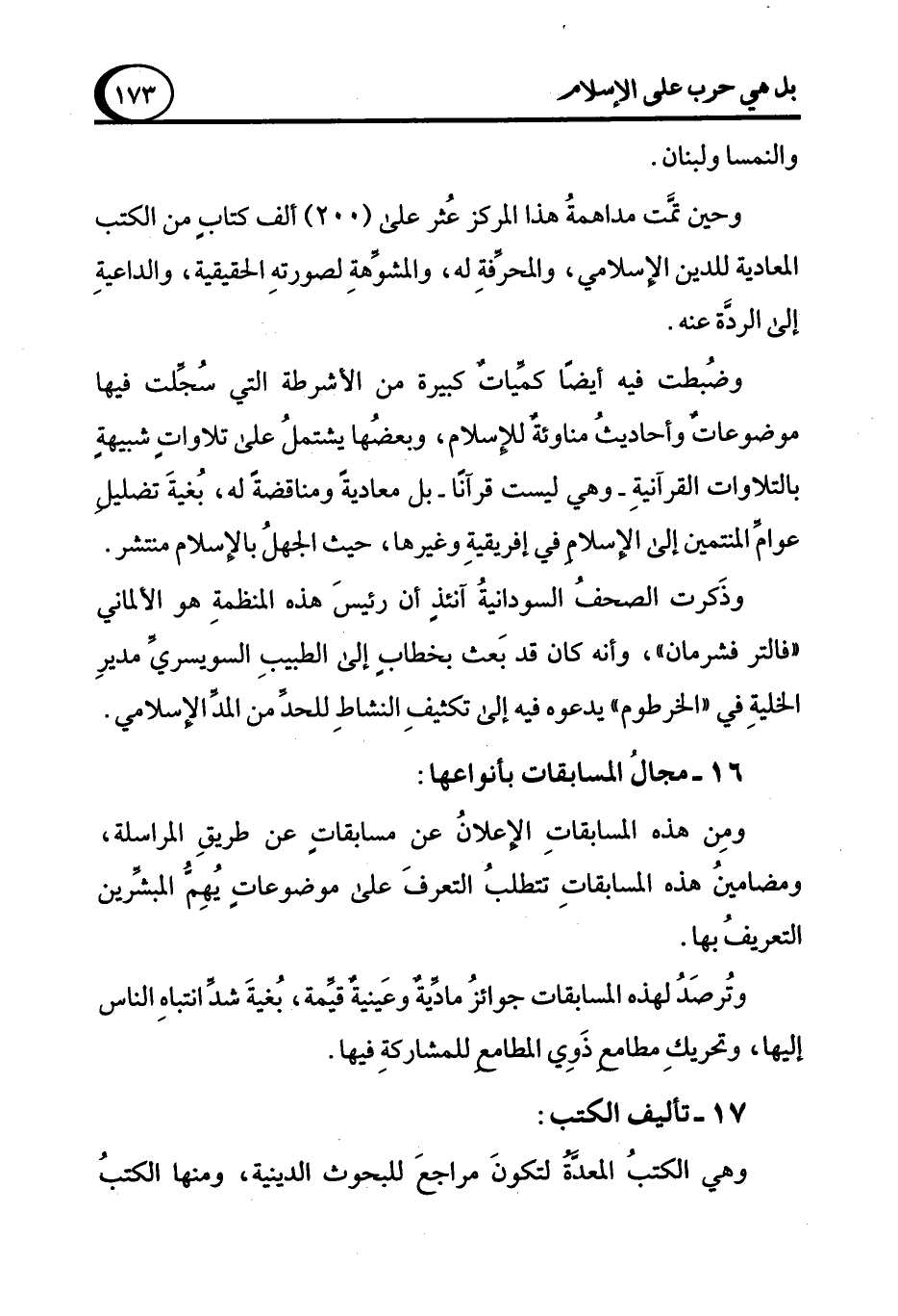 وحين تمَّت مداهمةُ هذا المركز عُثر على (200) ألف كتابٍ من الكتب المعادية للدين الإسلامي، والمحرِّفةِ له، والمشوِّهةِ لصورتهِ الحقيقية، والداعيةِ إلى الردَّة عنه.