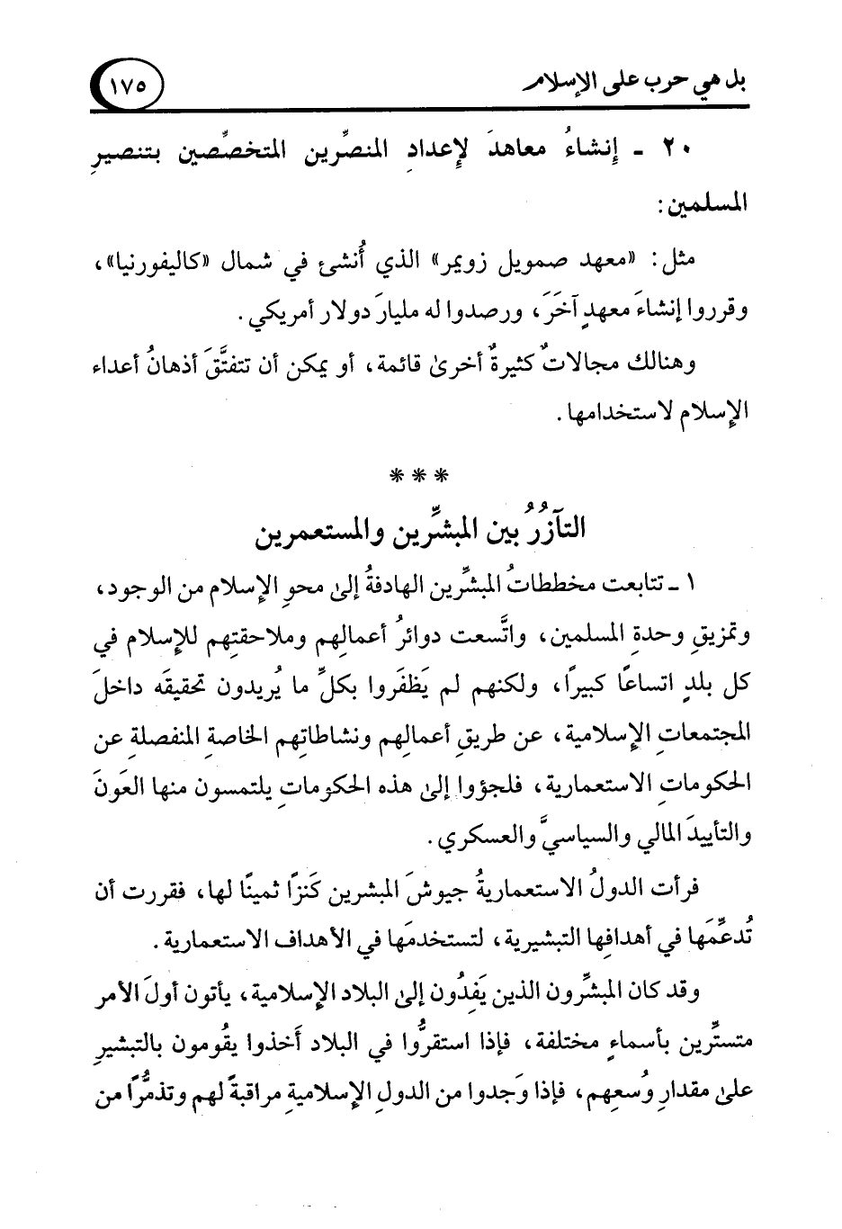 20 - إِنشاءُ معاهدَ لإِعدادِ المنصِّرين المتخصِّصين بتنصيرِ المسلمين: