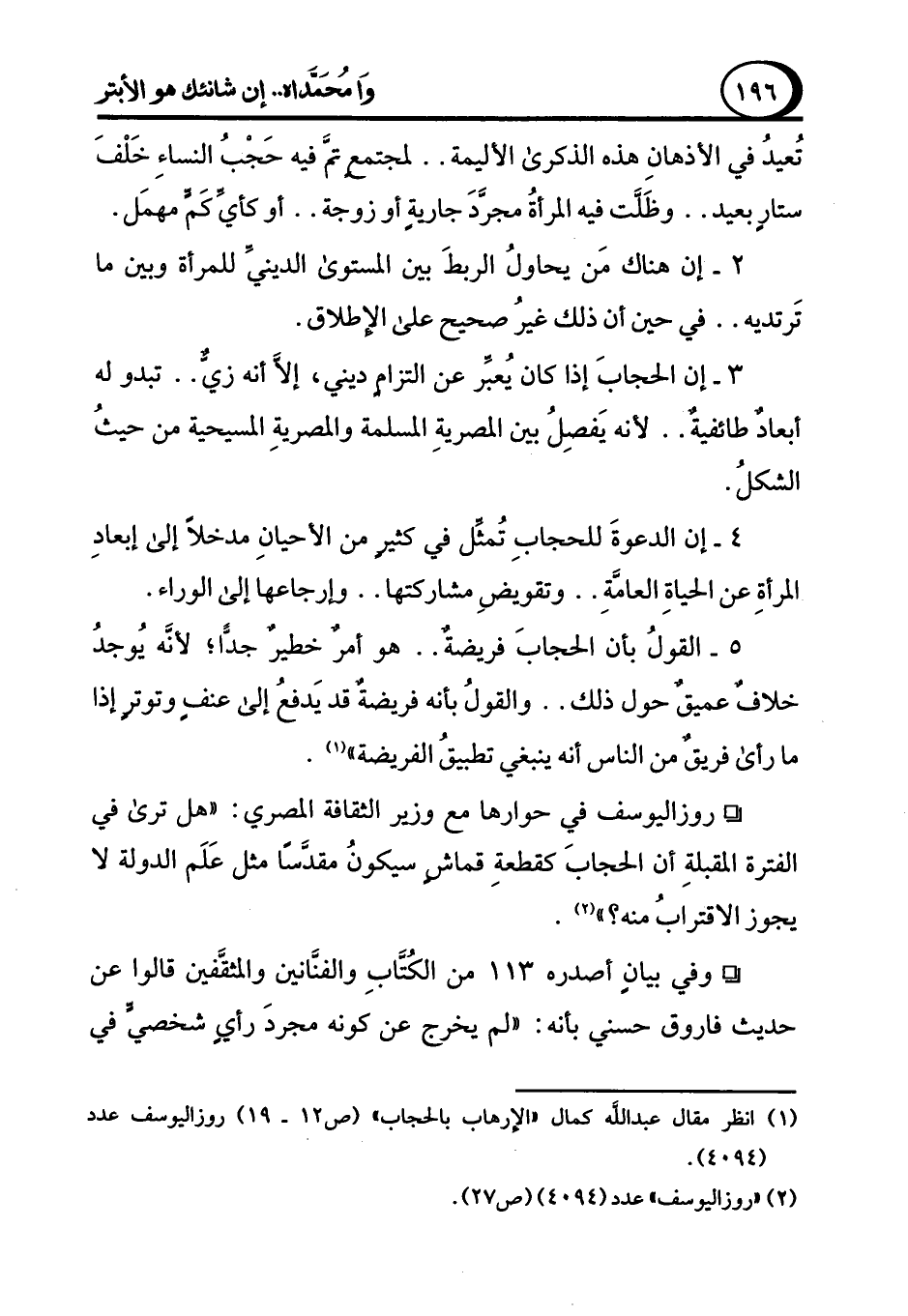 (¬1) انظر مقال عبد الله كمال "الإرهاب بالحجاب" (ص 12 - 19) روزاليوسف عدد (4094).